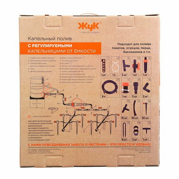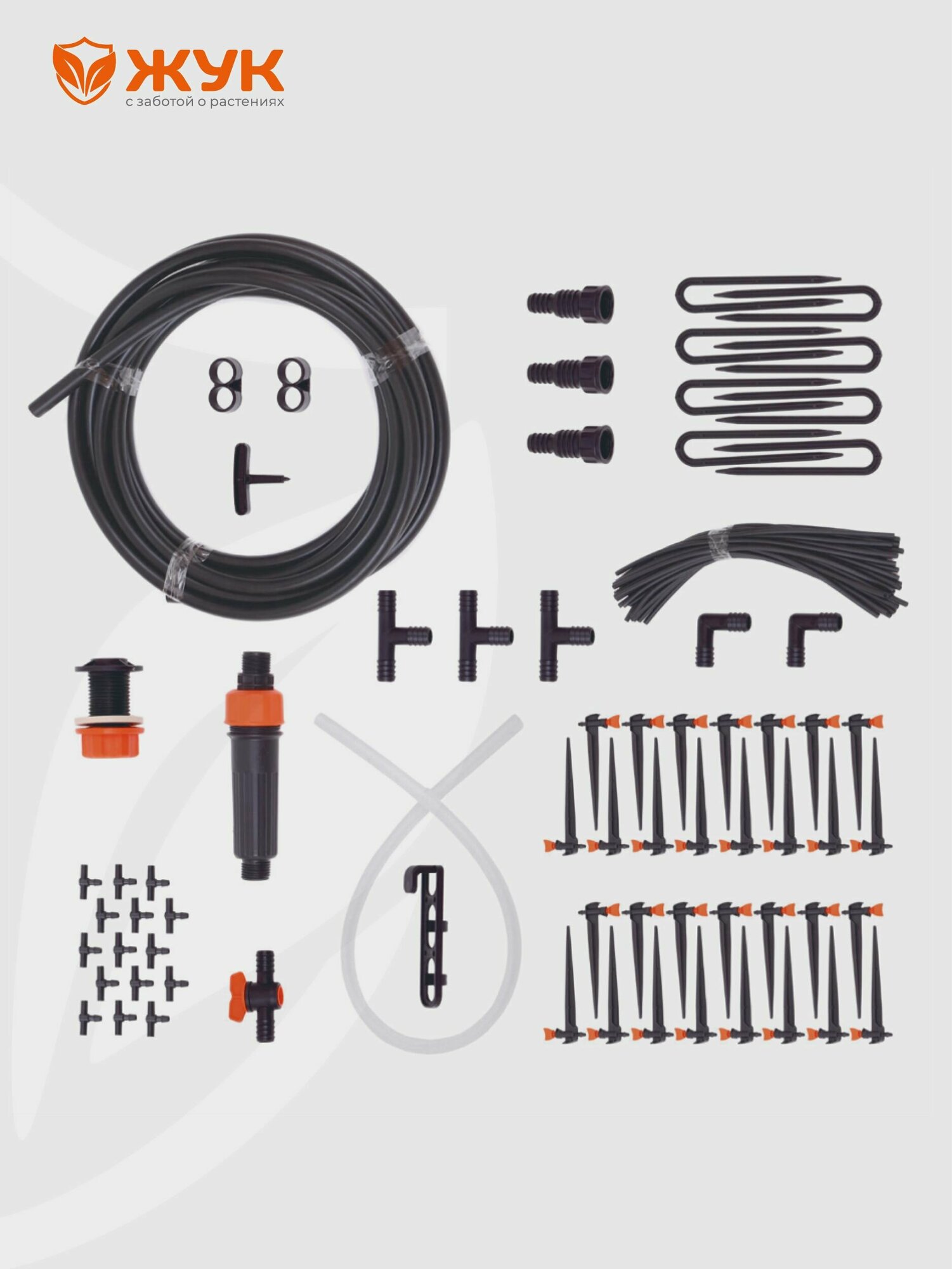 Жук Набор капельного полива от емкости, длина шланга: 18 м, кол-во растений: 60 шт