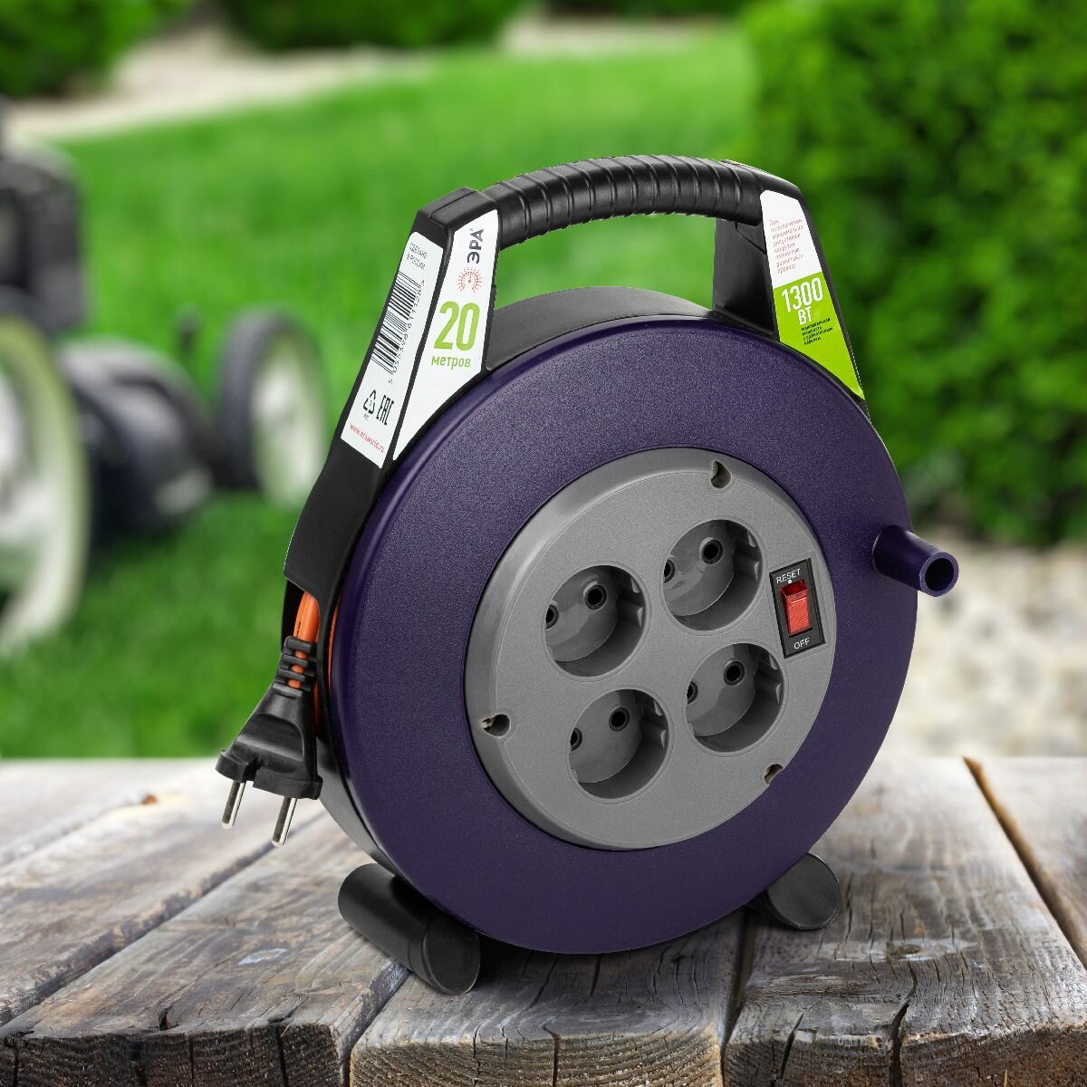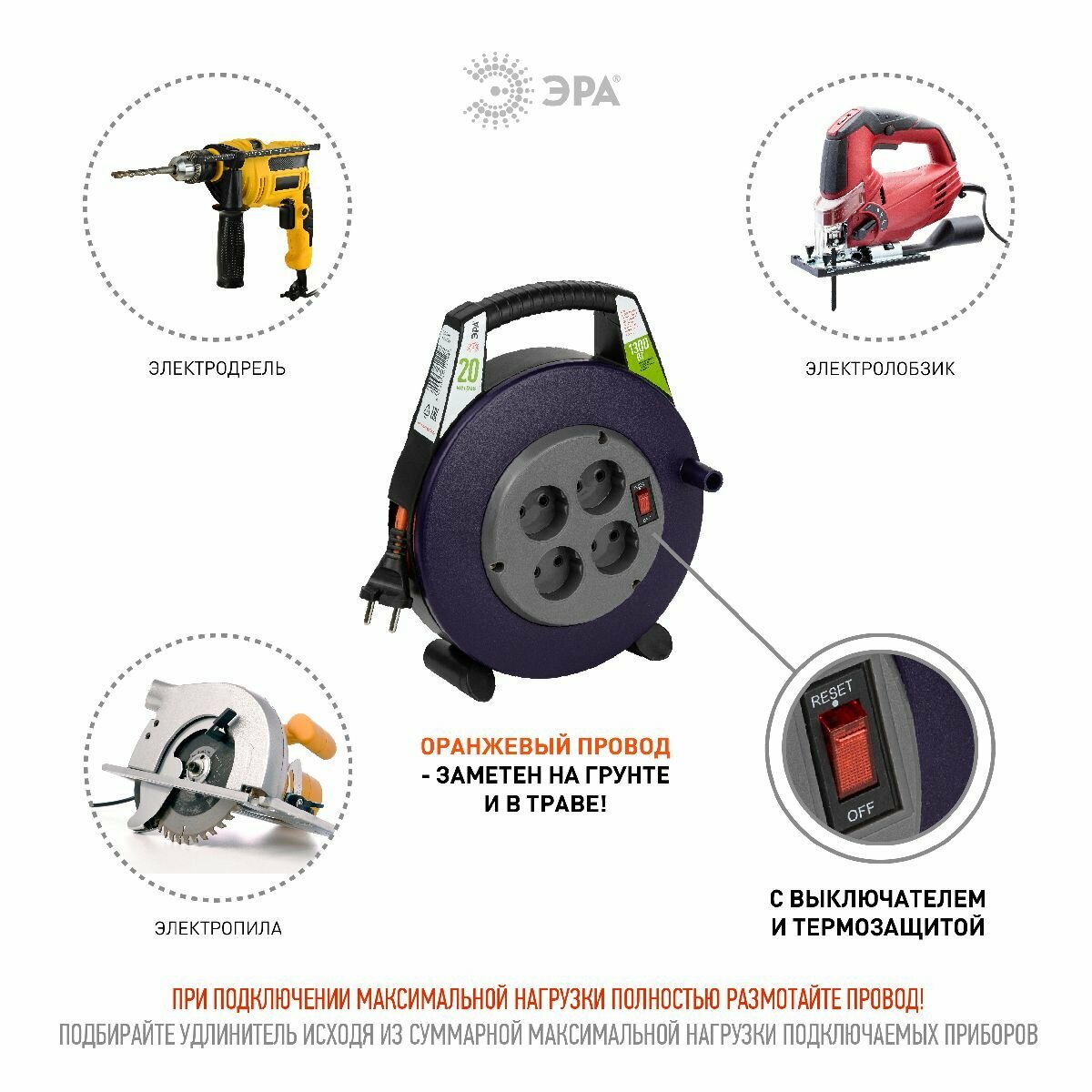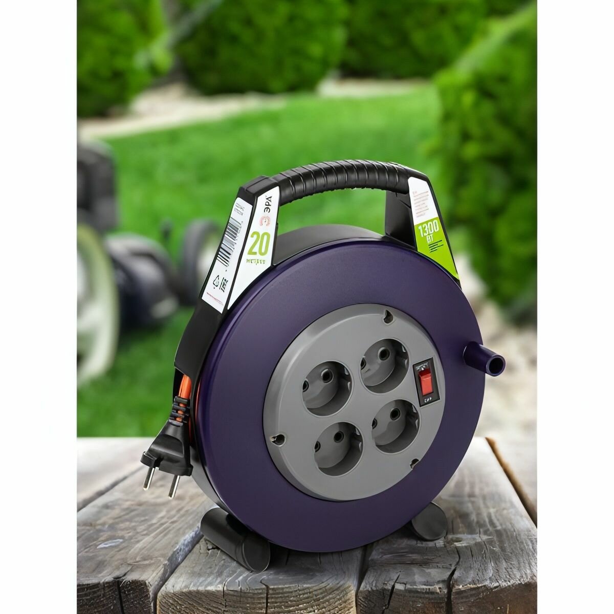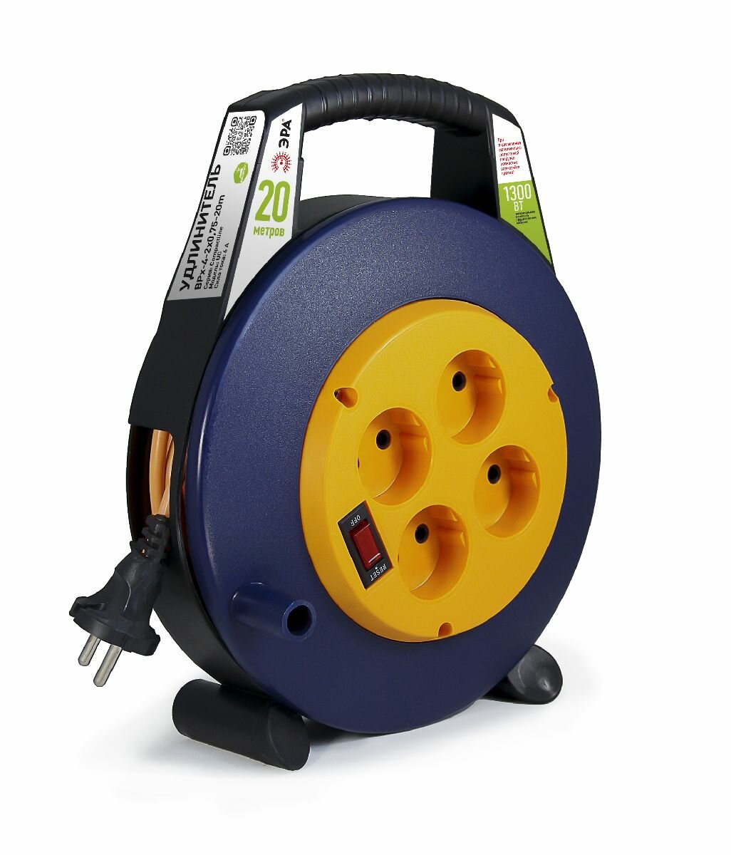 ЭРА Удлинитель 4-мест 20м ПВС 2*0,75 черный катушка IP20 ЭРА в закрытом корпусе