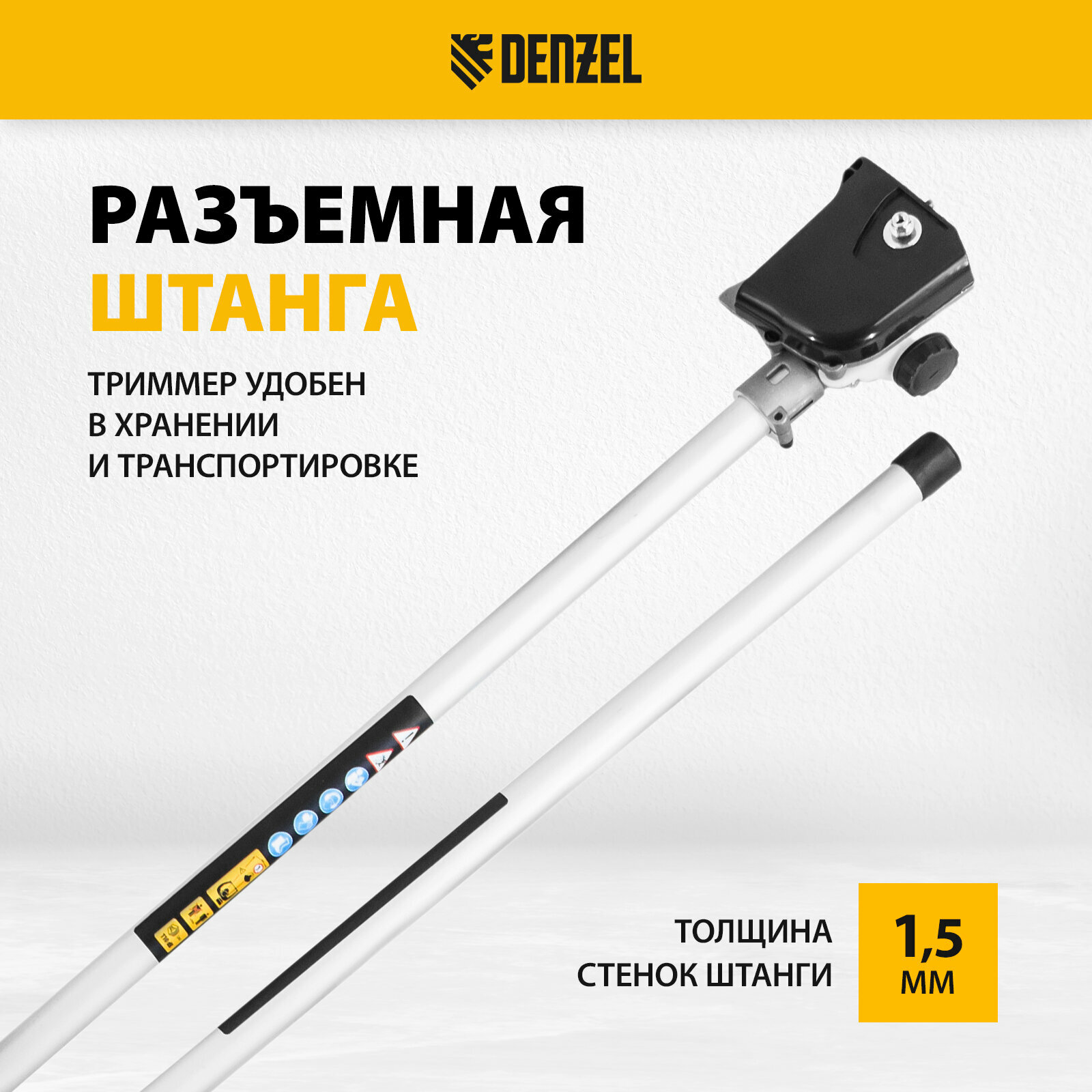 Триммер бензиновый Denzel DR-52 52 см3, неразъемная штанга, состоит из 2 частей 96275