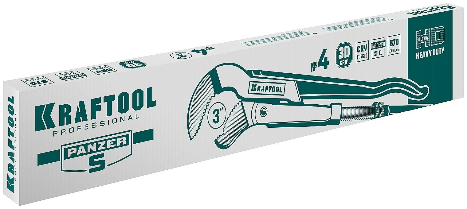 KRAFTOOL PANZER-S, №4, 3", 670 мм, Трубный ключ с изогнутыми губками (2733-30_z02)