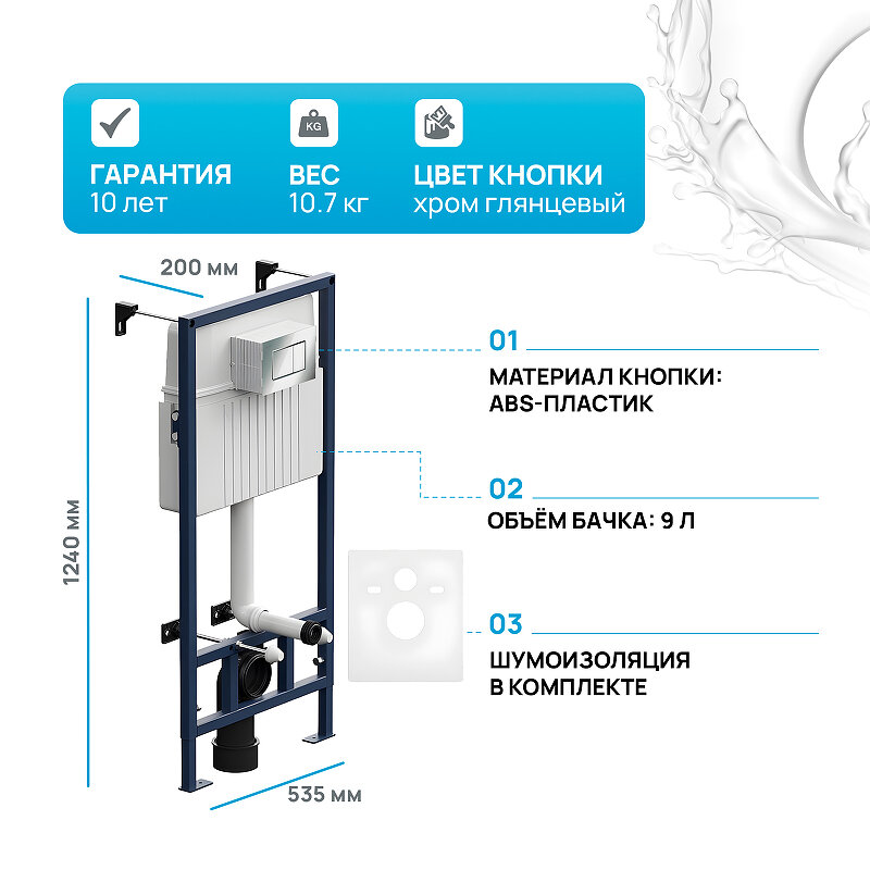 Инсталляция AM.PM ProC S I012707.0201 комплект 4 в 1: инсталляция для унитаза, механическая кнопка ProC S глянцевый белый, шумоизоляция, крепления