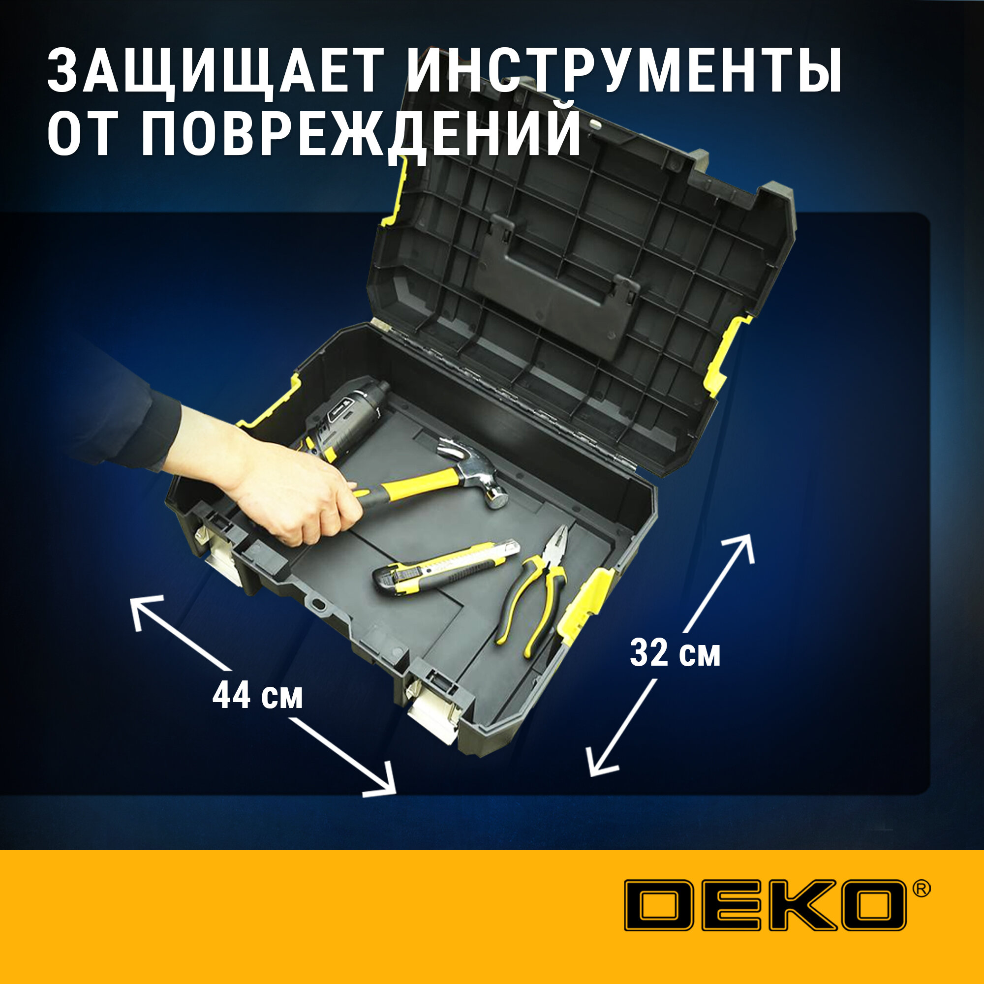 Купить Ящик для инструментов DEKO DKTB37 , 44 см x 32 см x 17 см , с замком, пластик, чёрный