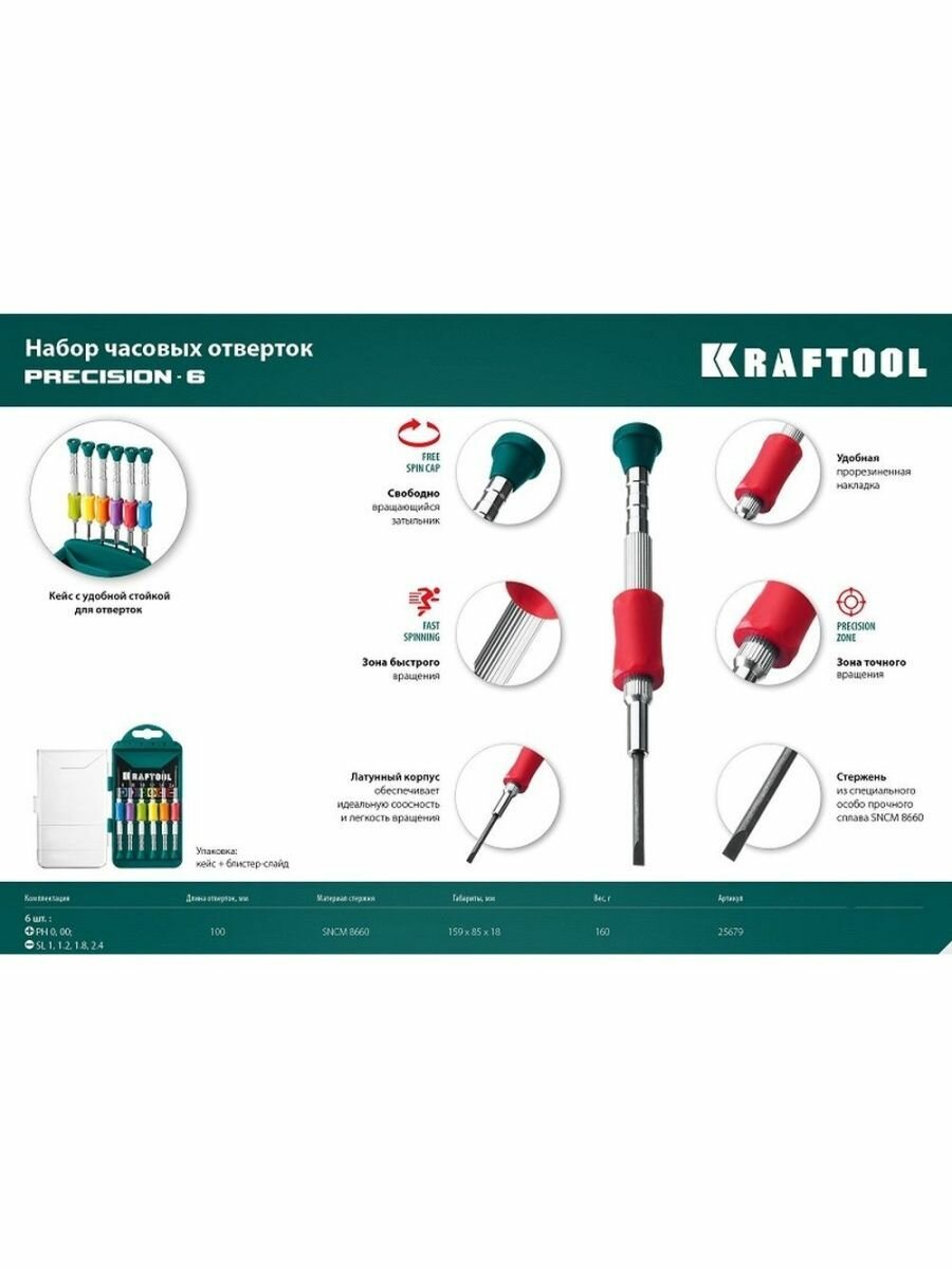 KRAFTOOL Precision-6 6 предм., Отвертка для точных работ (25679)