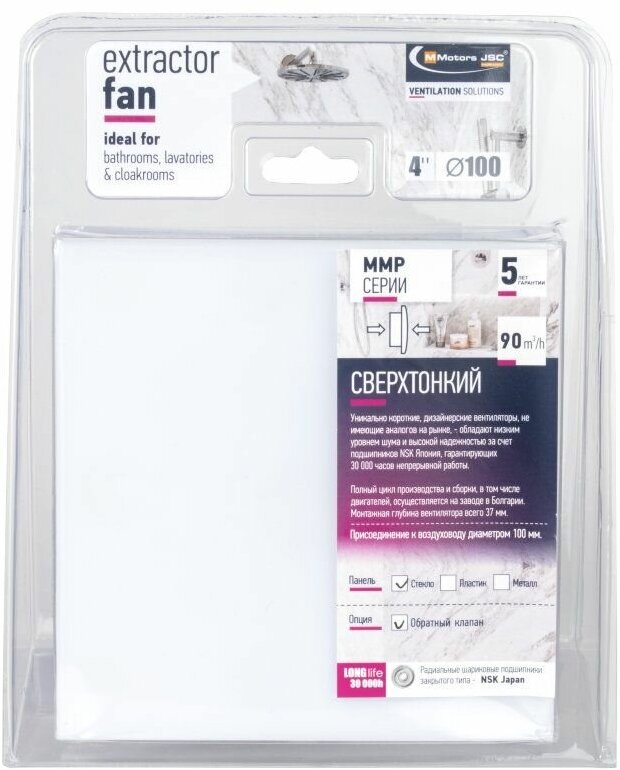 MMOTORS JSC Вытяжной бесшумный вентилятор для ванной Mmotors ММР 100 стекло под плитку, тонкий 0757