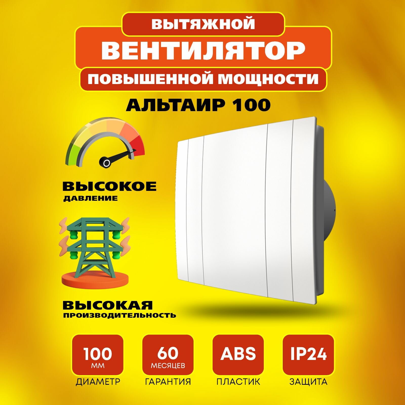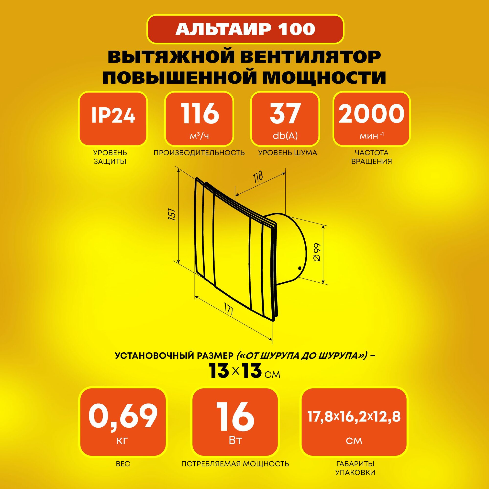 Вентилятор 100 Альтаир повышенной мощности 16 Вт 37 дБ 116 м3/ч