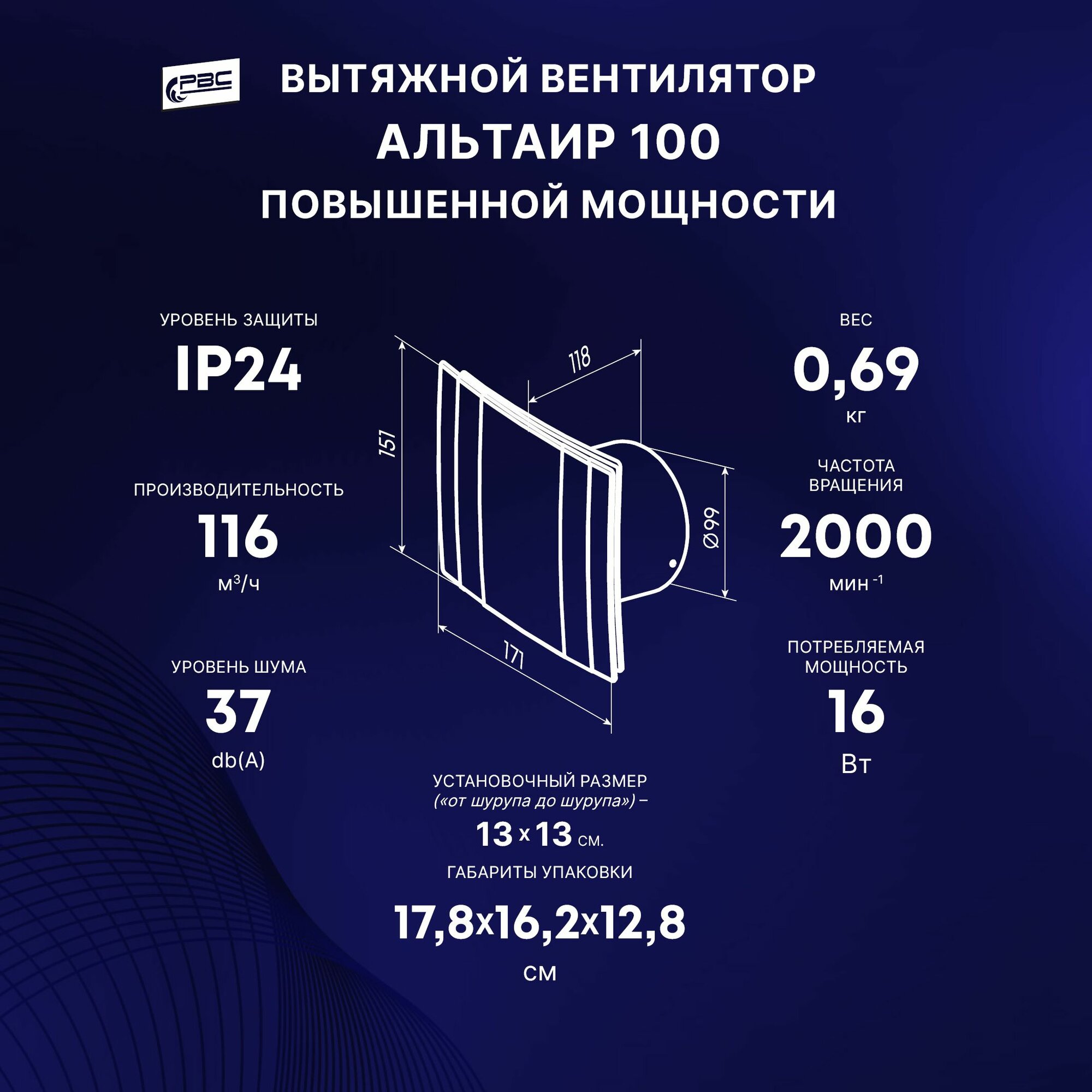 Купить Вентилятор вытяжной РВС Альтаир 100 повышенной мощности