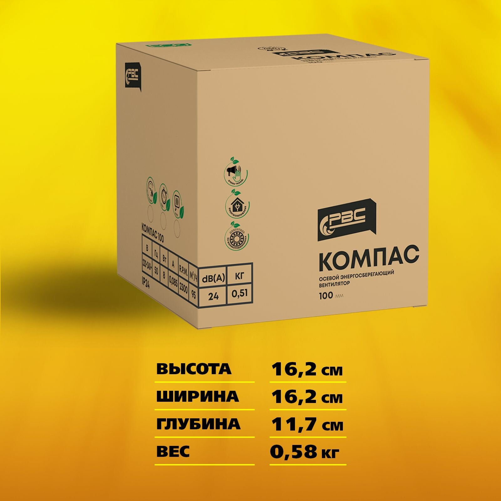 Вентилятор РВС 100 Компас энергосберегающий 8Вт 24дБ 95м3/ч