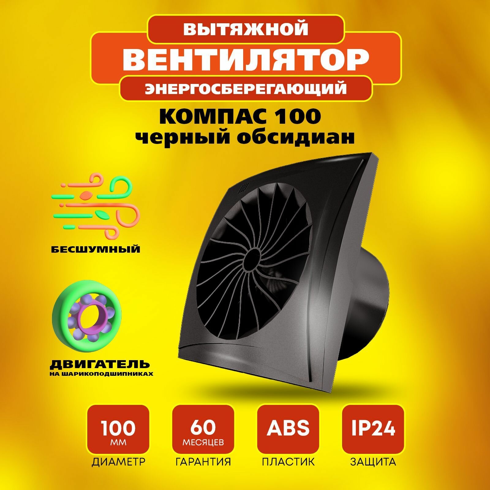 Купить Вентилятор 100 Компас энергосберегающий, 8 Вт, 24 дБ, 95 м3/ч, черный обсидиан