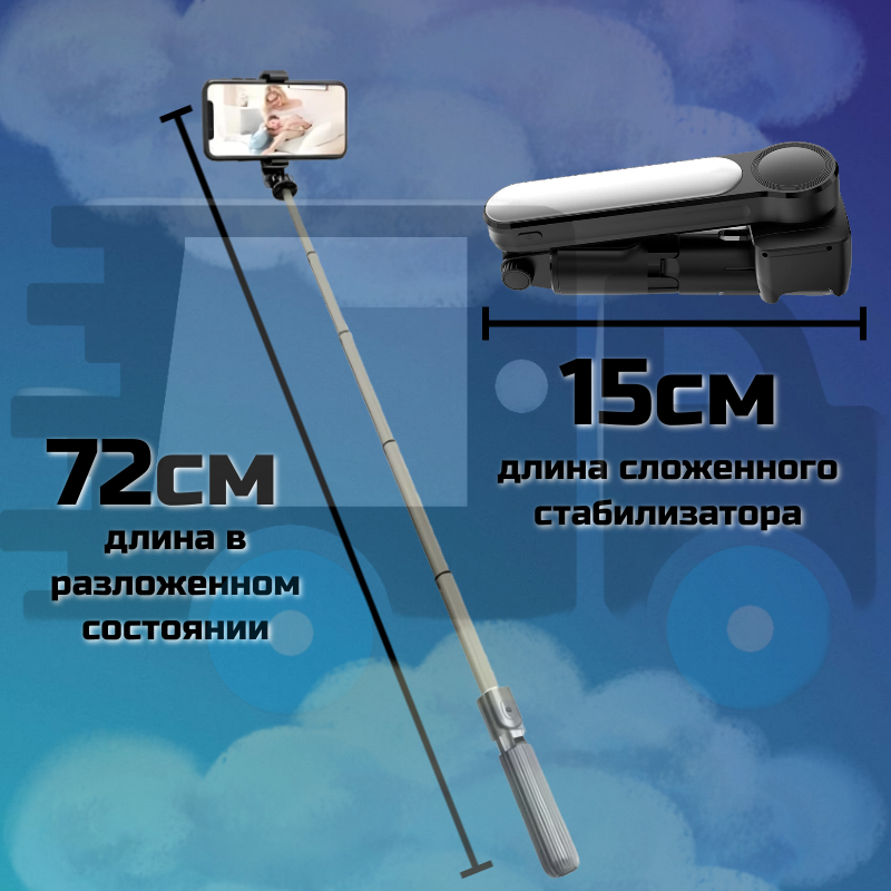 СохранитьСелфи палка штатив трипод Стабилизатор-монопод 4 в 1 умная стабилизация подсветка и блютуз пульт интересное: