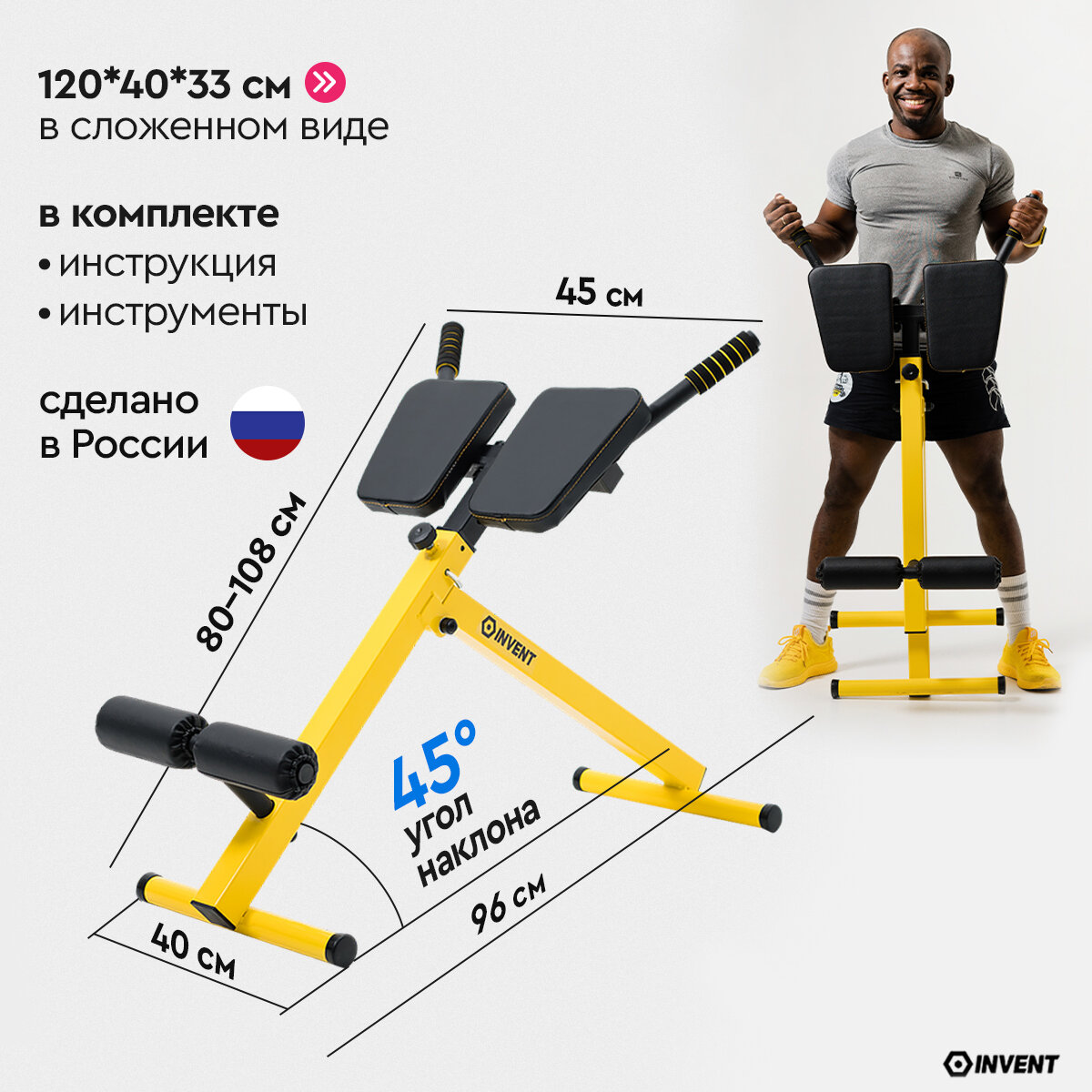 Скамья гиперэкстензионная INVENT GP-01, складная, угол наклона 45°, до 150 кг