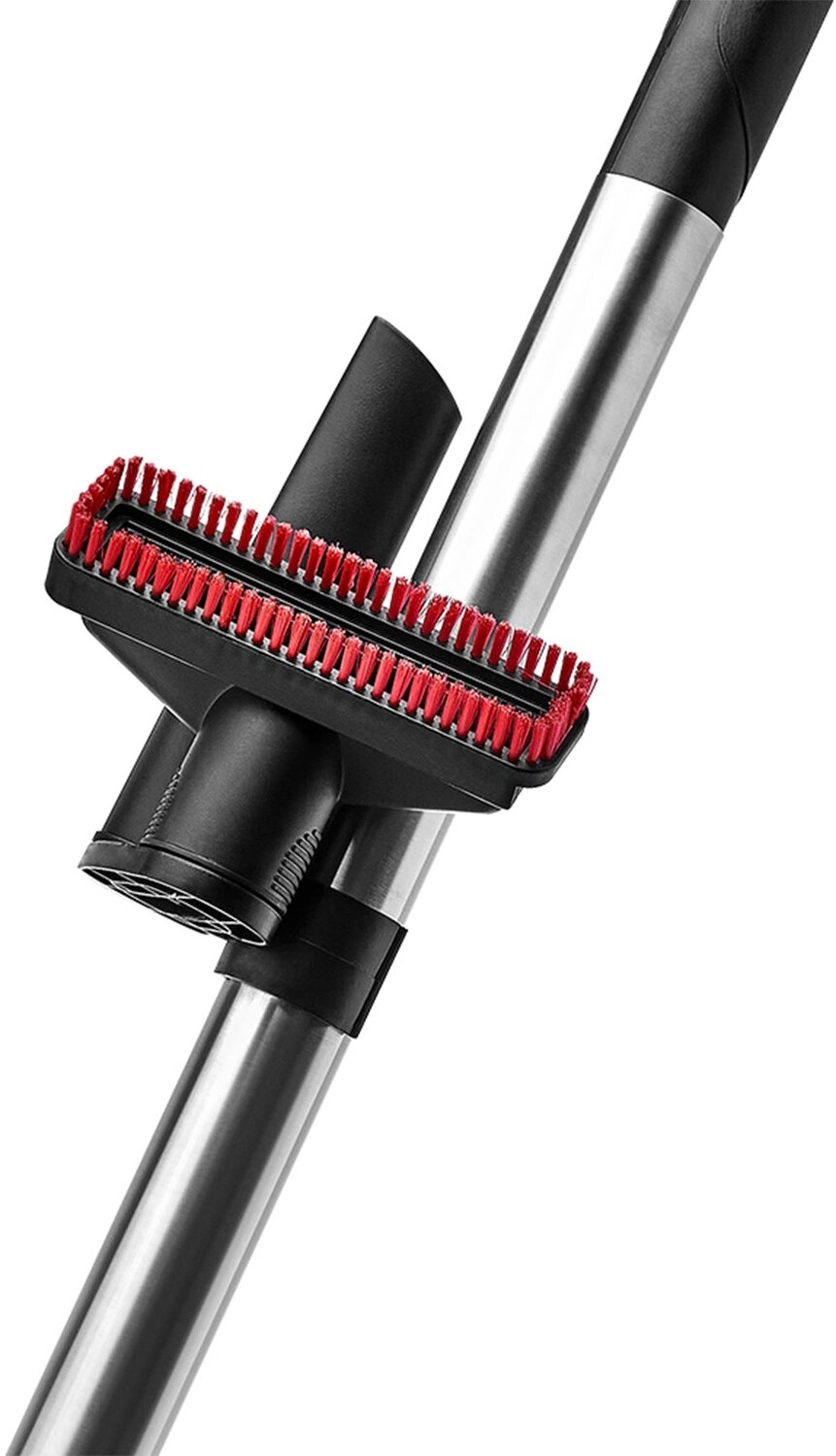 | Плюсы: | Мощно всасывает, большое количество насадок, небольшой по размеру |
