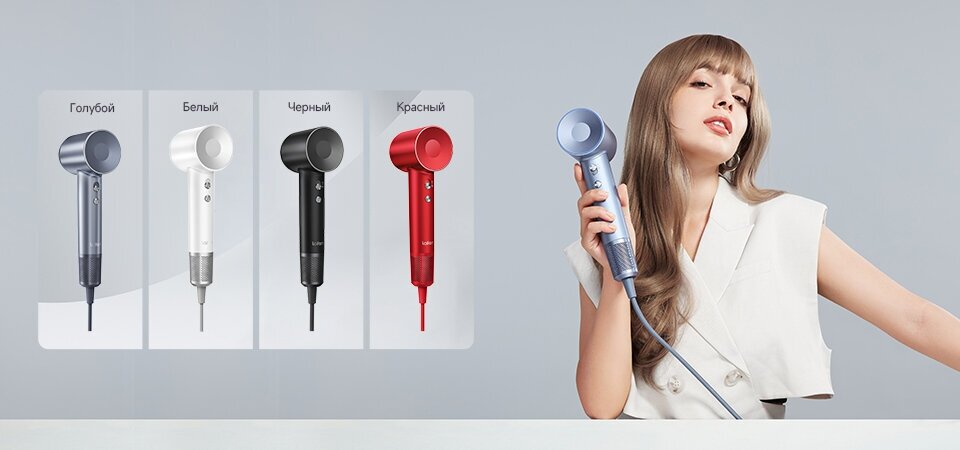 Быстро сушит Низкий уровень шума Красивая подсветка Аналог dyson, оригинальный дайсон тоже есть, различий не увидела ни в скорости сушки ни в качестве волос после сушки. |