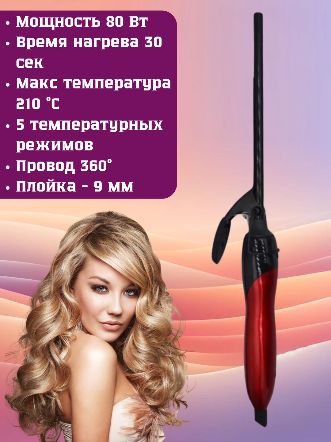 Плойка для завивки волос Cronier 9мм интересное: