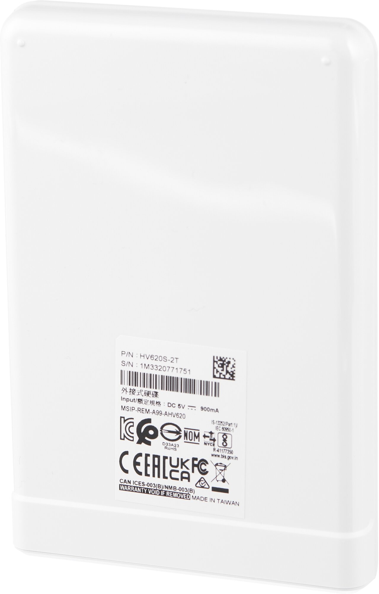Внешний диск HDD A-Data HV620S, 2ТБ, белый [ahv620s-2tu31-cwh]