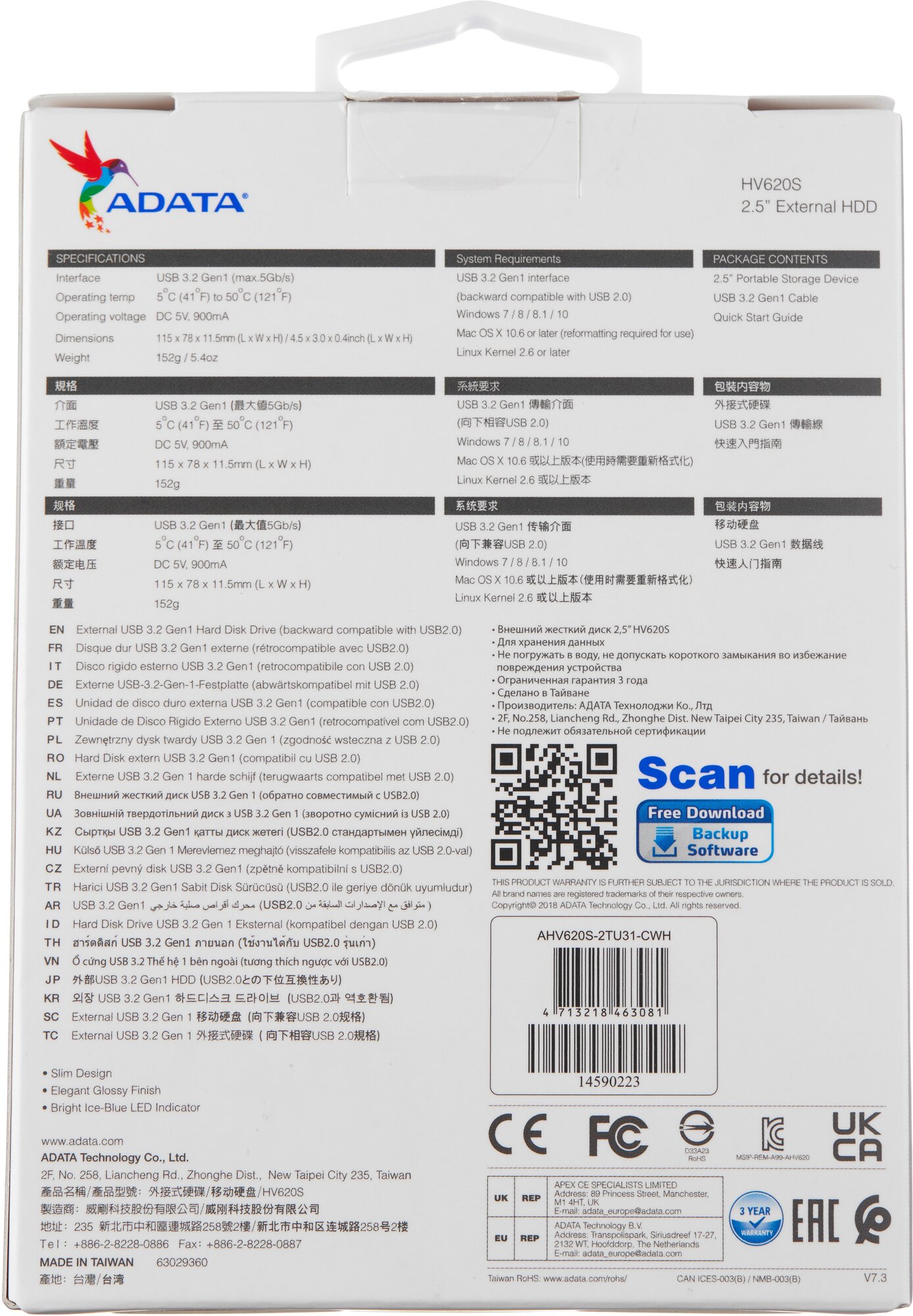Внешний HDD 2Tb A-Data USB3.1 Ahv620s-2tu31-cwh Hv620s 2.5" белый интересное: