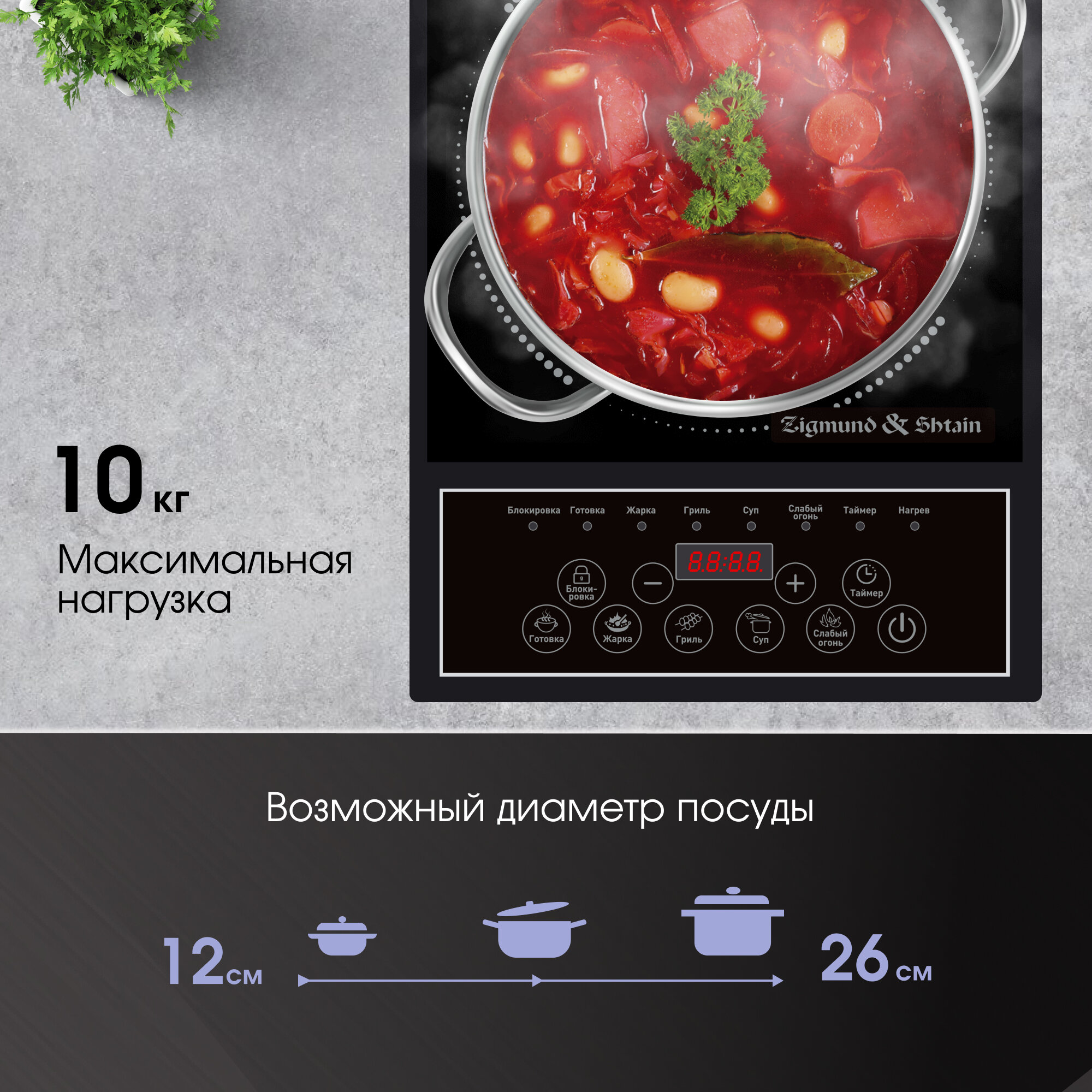 Настольная плита электрическая Zigmund & Shtain ZIP-557, 2000 Вт, черный интересное: