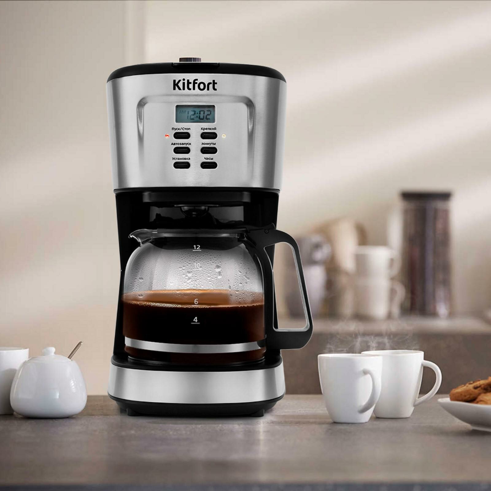 Купить Кофеварка KITFORT KT-727, капельная, черный / серебристый