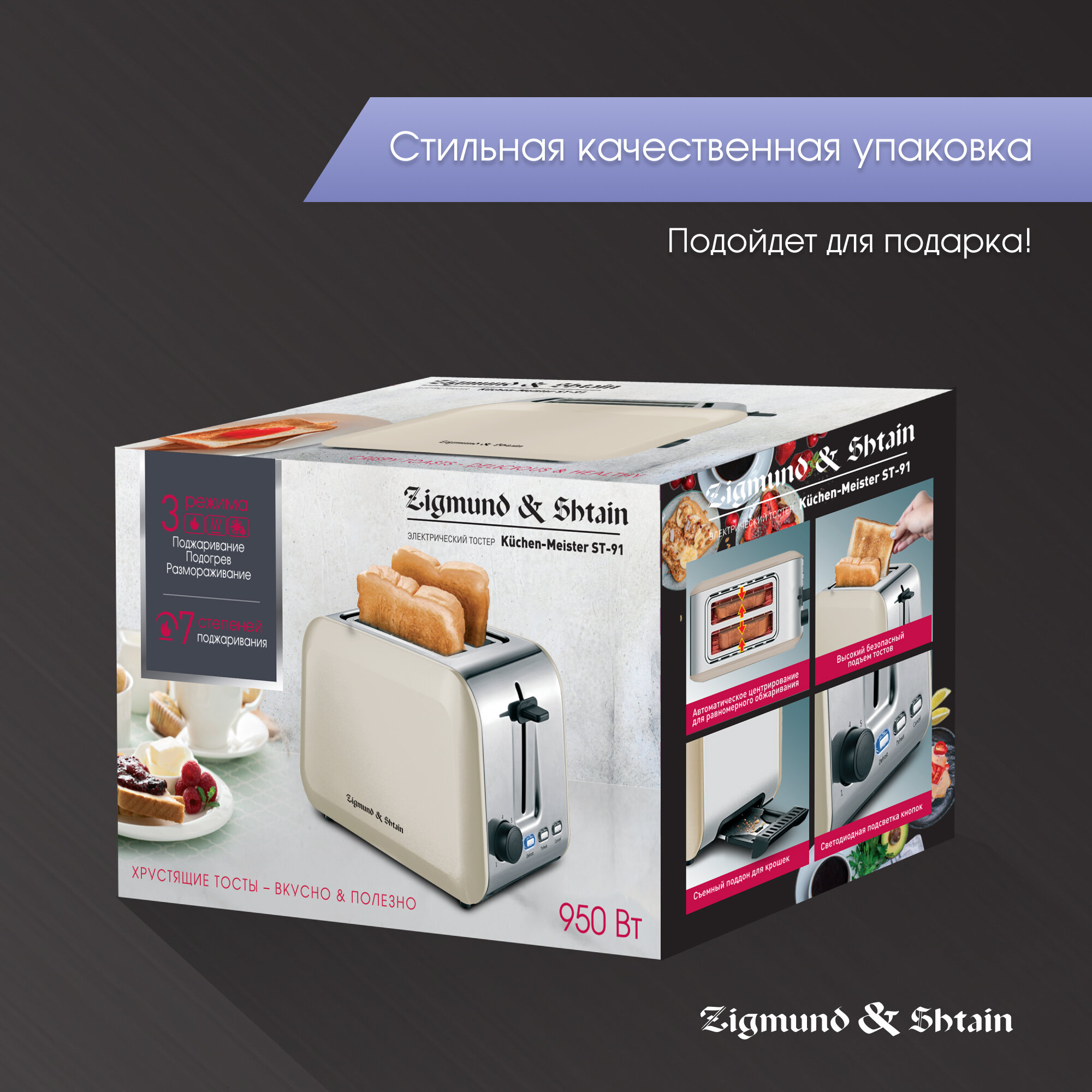 Тостер Zigmund & Shtain ST-91, 7 степеней обжарки, 950 Вт, бежевый/стальной интересное: