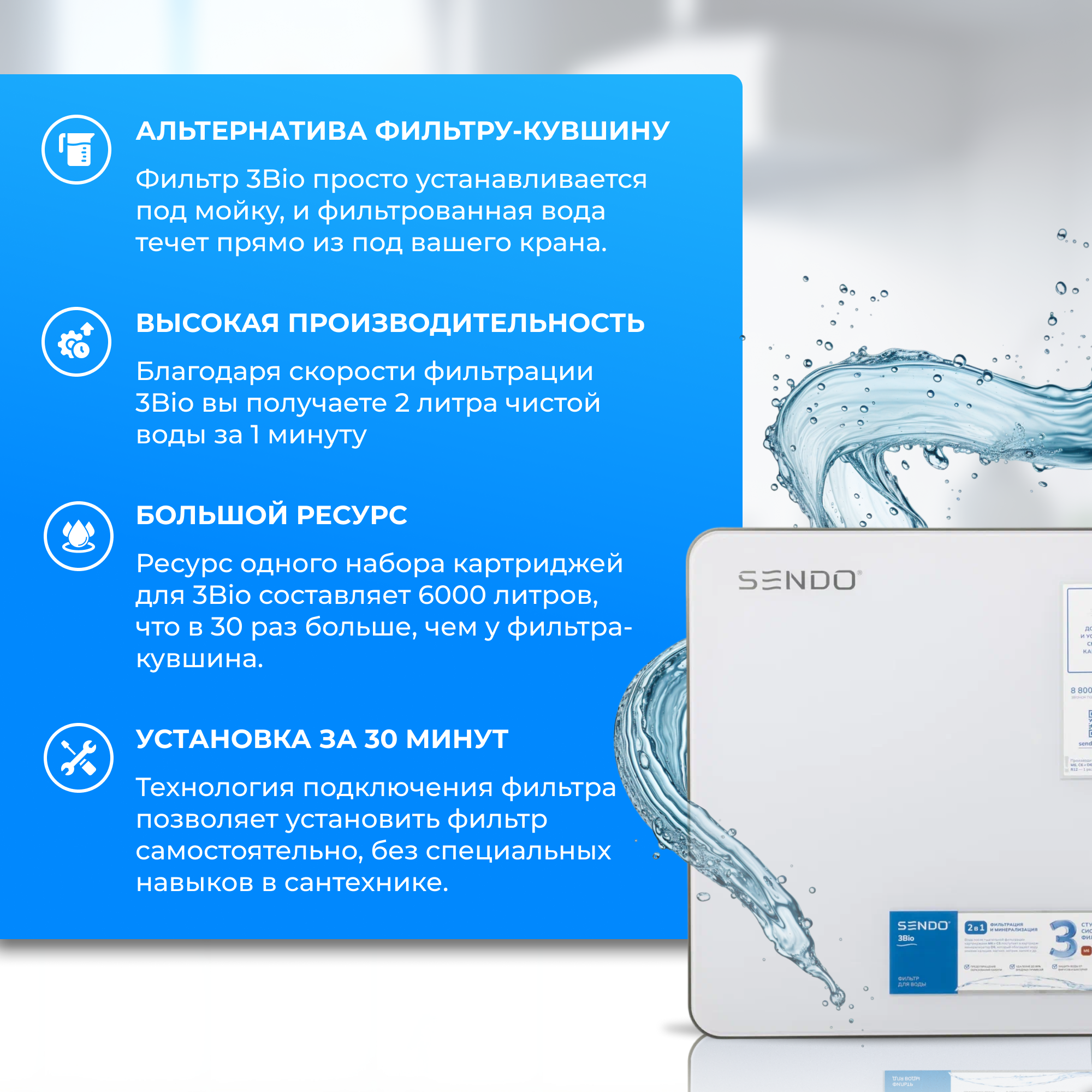 Проточный фильтр под раковину Sendo Aqua 3Bio со встроенной минерализацией интересное: