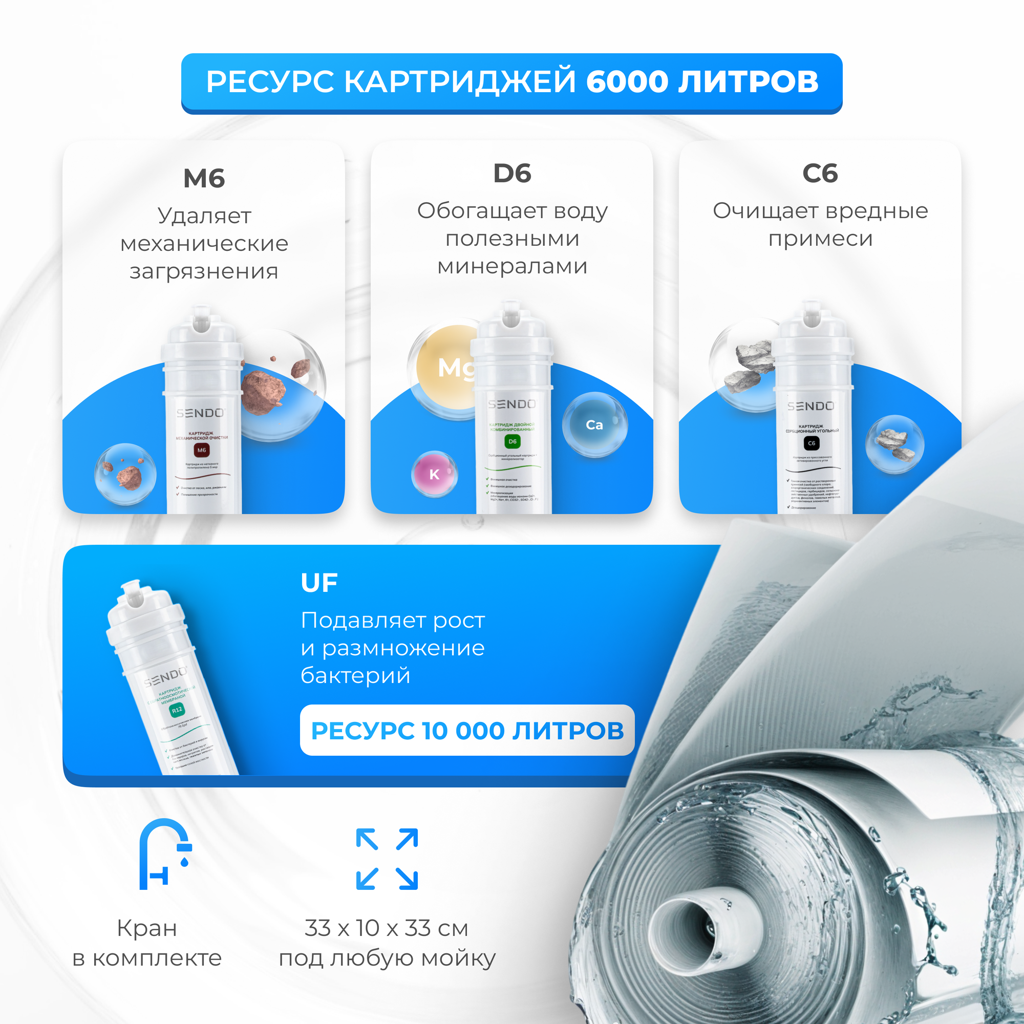Проточный фильтр под раковину Sendo Aqua 4Bio, встроенная минерализация, высокая скорость очистки - 2 л/мин интересное:
