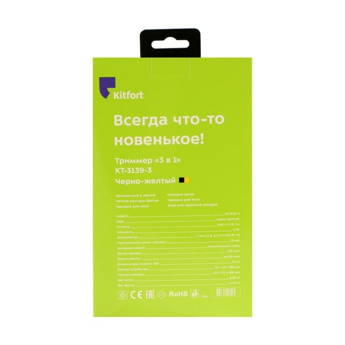 Триммер KitFort КТ-3139-3 черный/желтый интересное: