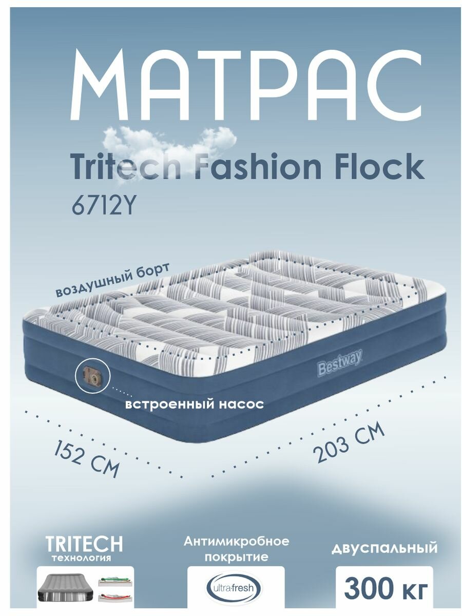 Надувной матрас Bestway Tritech Fashion Flock Queen 203x152x36см (6712Y)