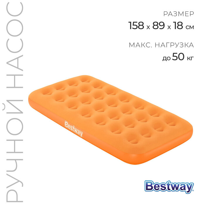 Надувной матрас туристический для сна с насосом Bestway 67918, 89х158х18 см, до 50 кг / Надувная кровать детская односпальная для палатки, для туризма