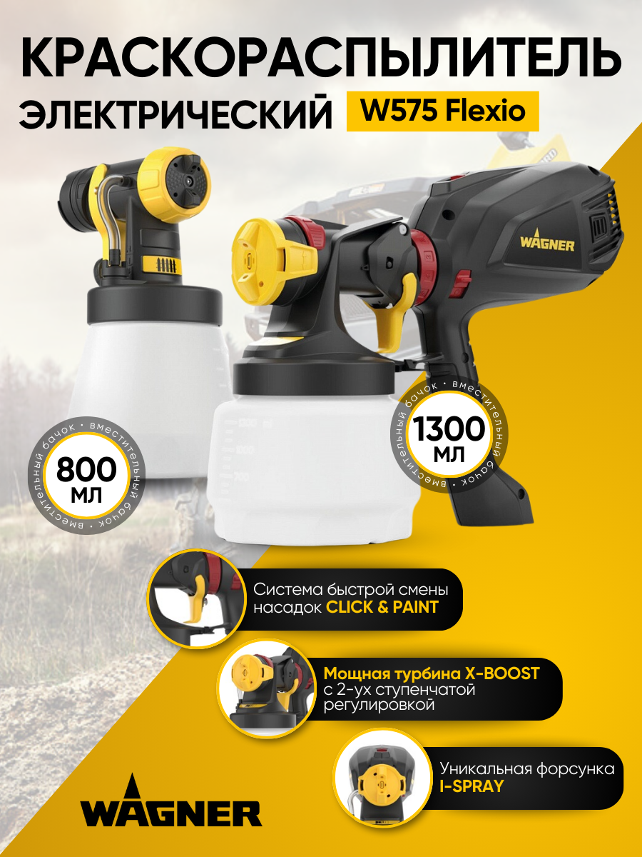 Краскораспылители Wagner Краскопульт электрический Wagner W575 Flexio 2397237 интересное: