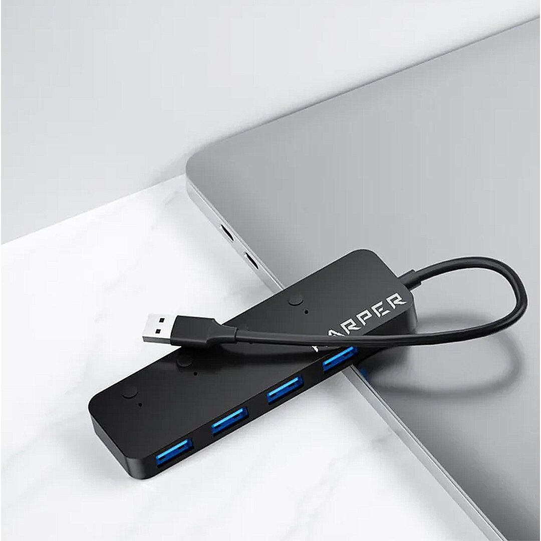 Купить USB Концентратор HARPER HUB-04MB / 4 порта USB 3.0 / скорость передачи до 5 Гб / c , черный