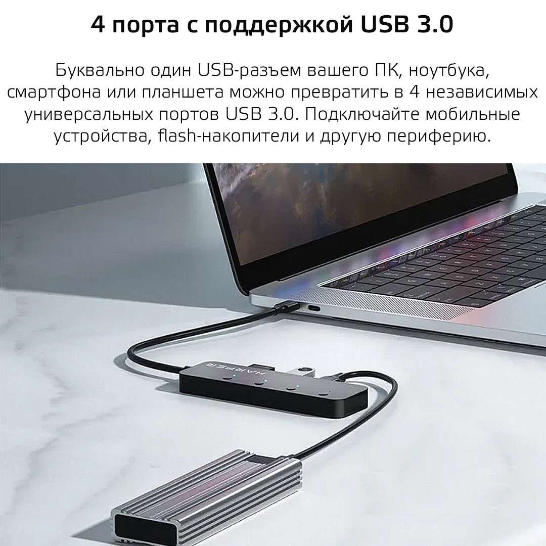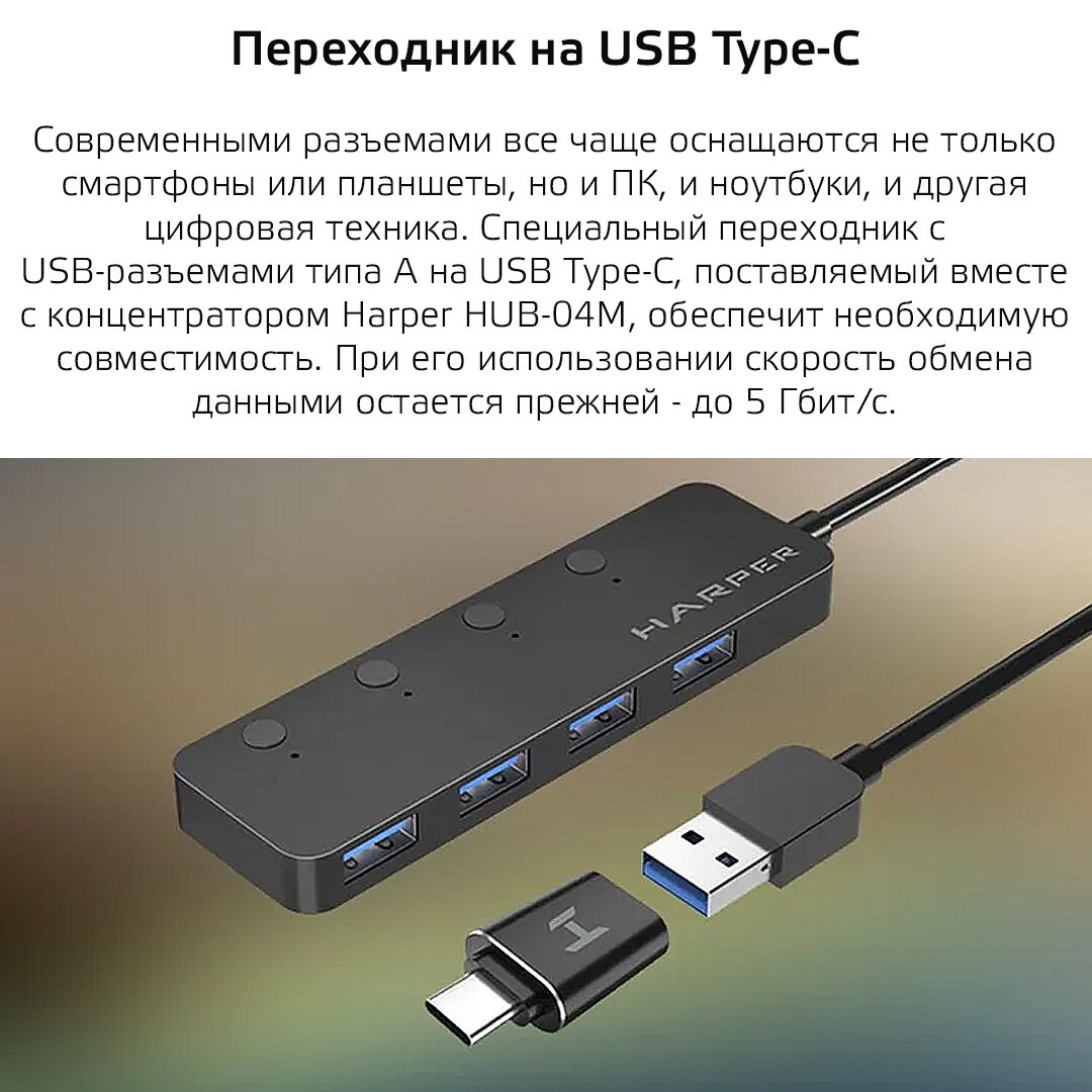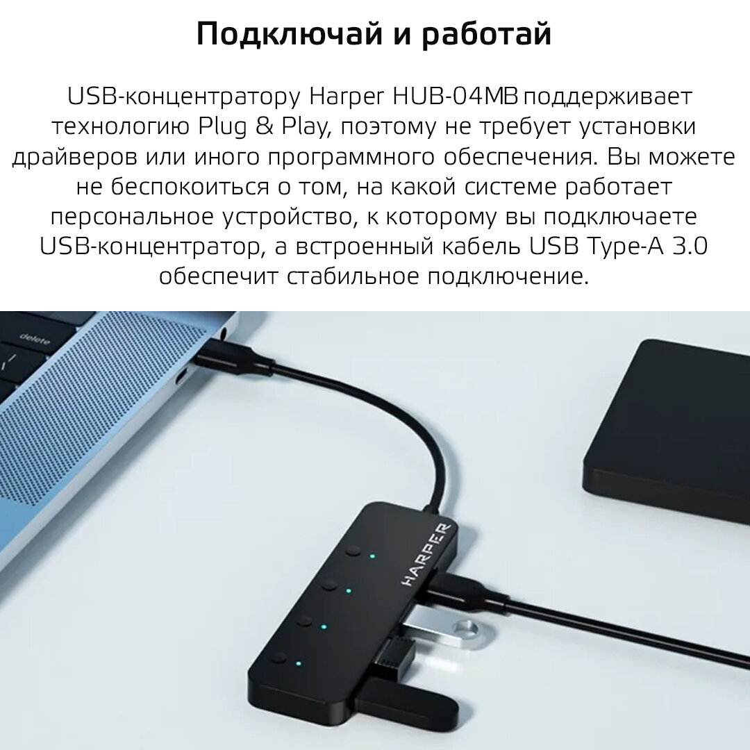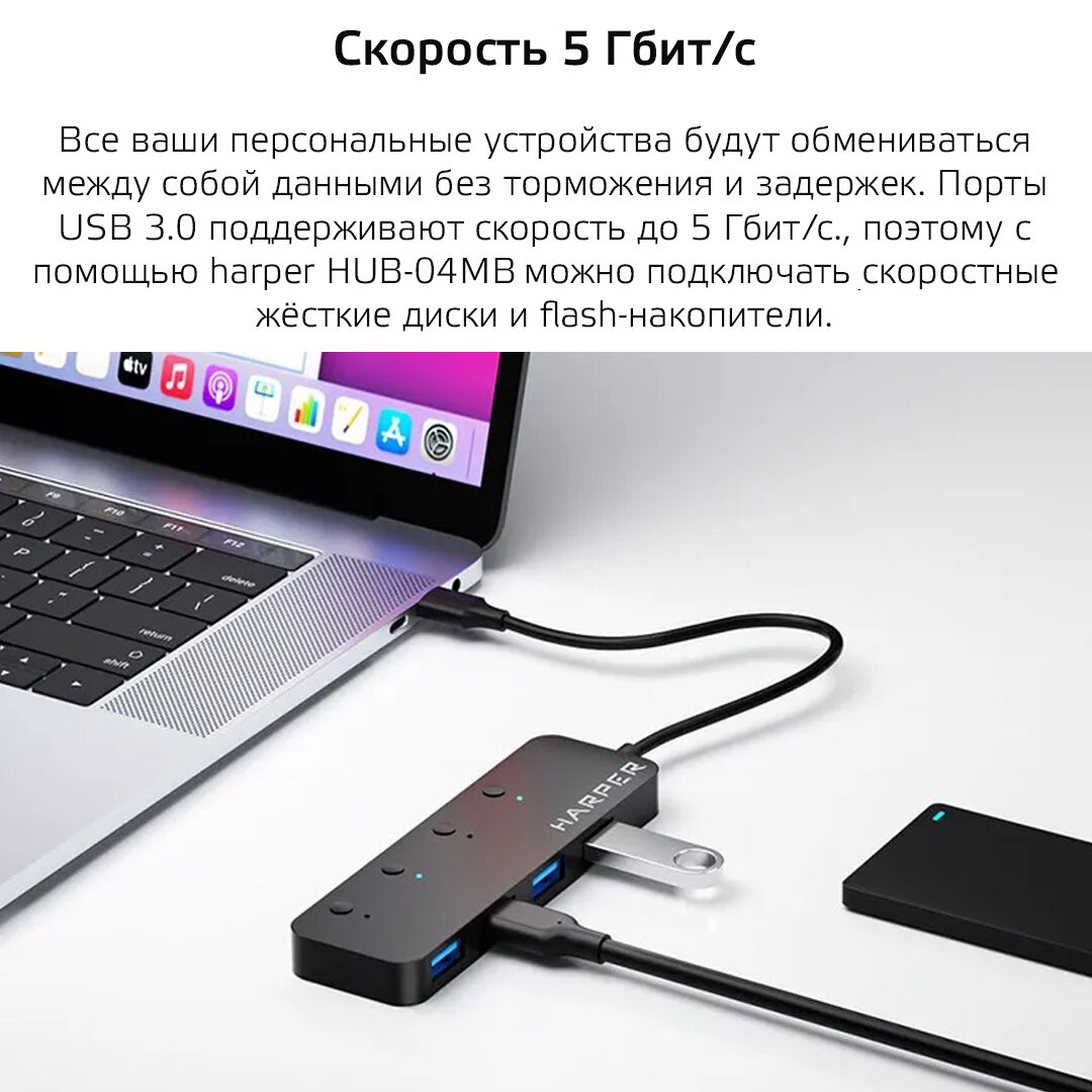 USB Концентратор HARPER HUB-04MB / 4 порта USB 3.0 / скорость передачи до 5 Гб / c , черный интересное: