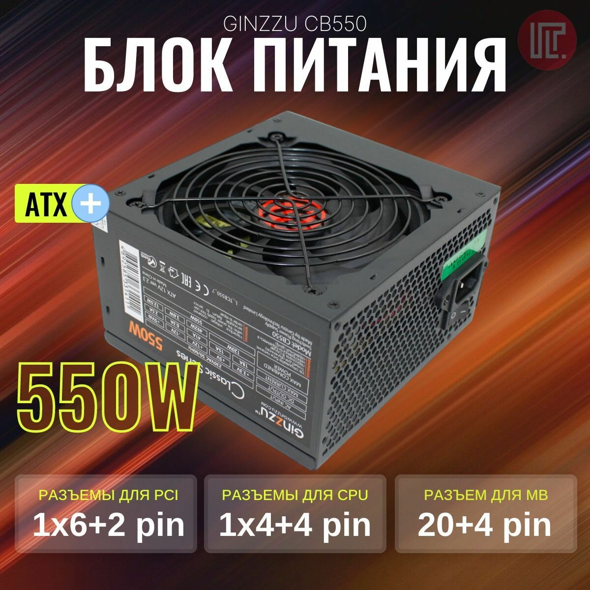 Блок питания Ginzzu 550W (CB550) ATX,12CM black,20+4p,CPU(4+4)