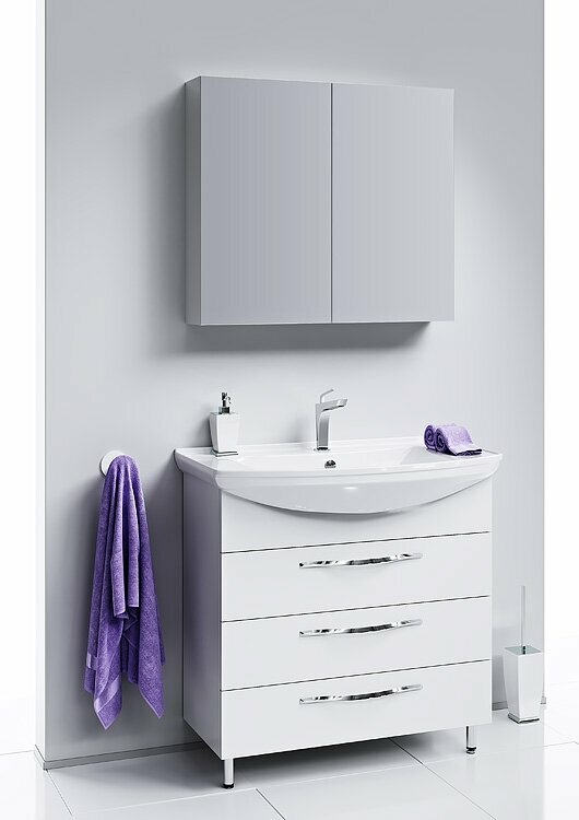 Тумба под раковину 81,6 см, белая, 3 ящика, Aqwella Аллегро Agr.01.08/3