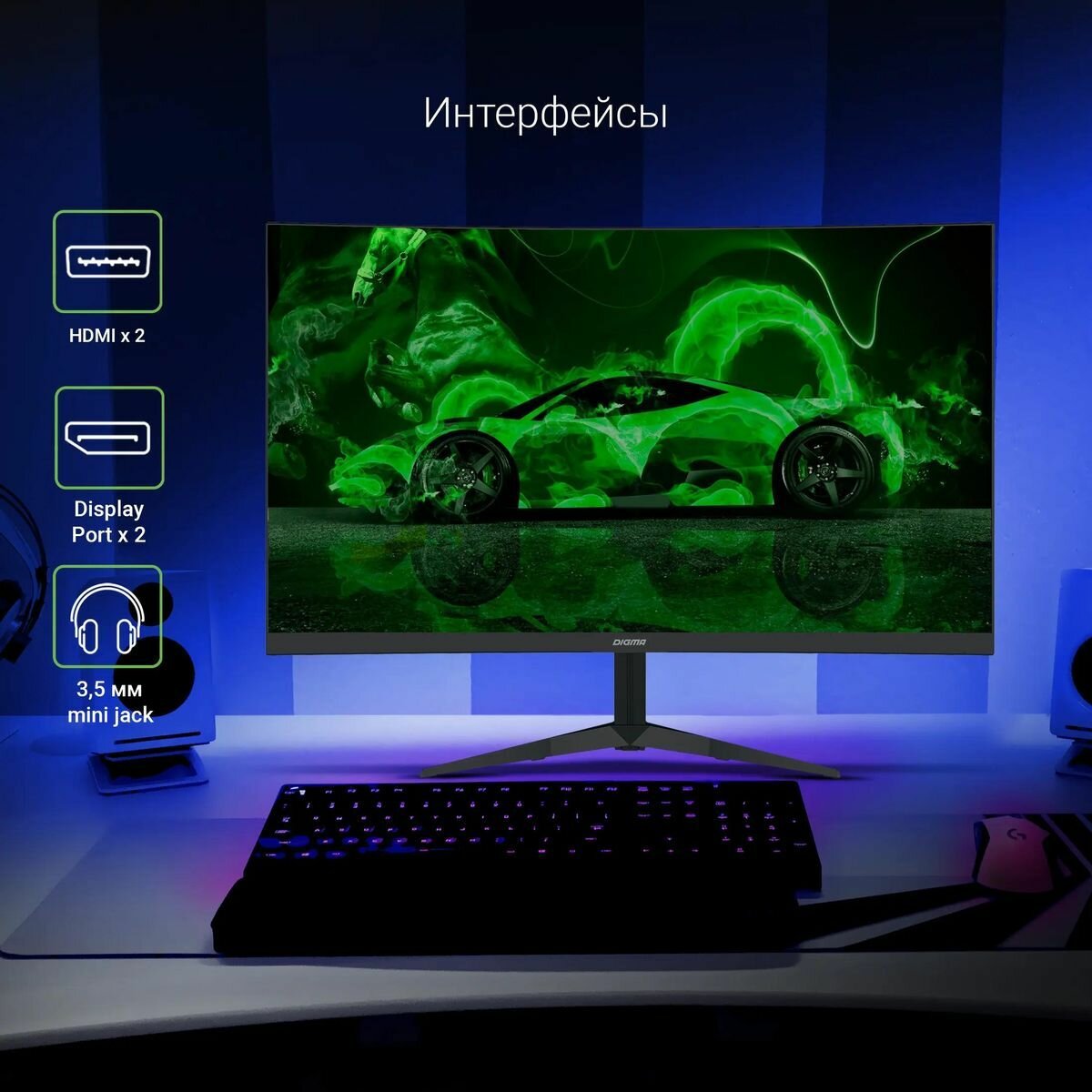 Сохранить23.6" Монитор Digma Gaming DM-MONG2450, 1920x1080, VA, 165Гц, 2хHDMI, 2хDP, изогнутый, черный интересное: