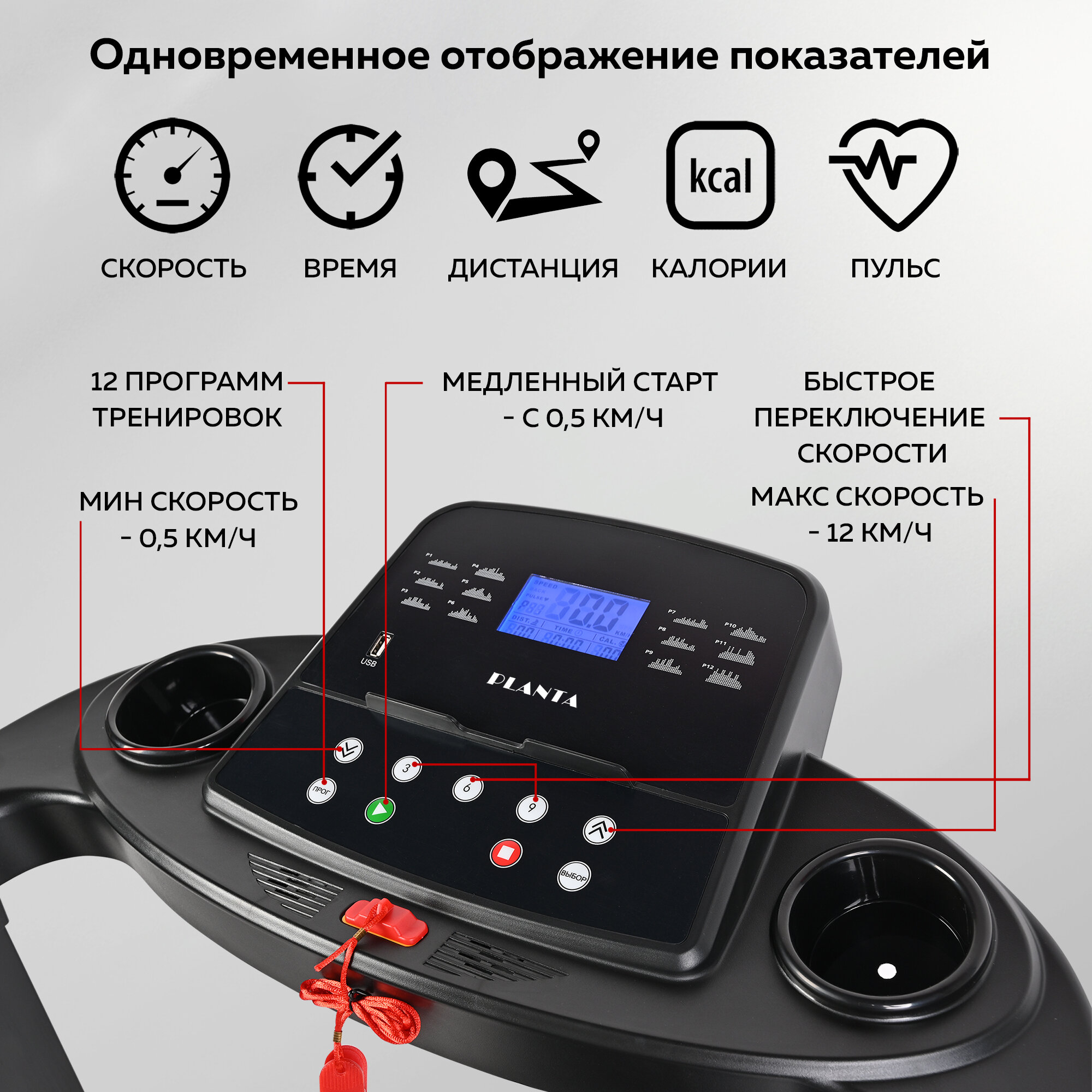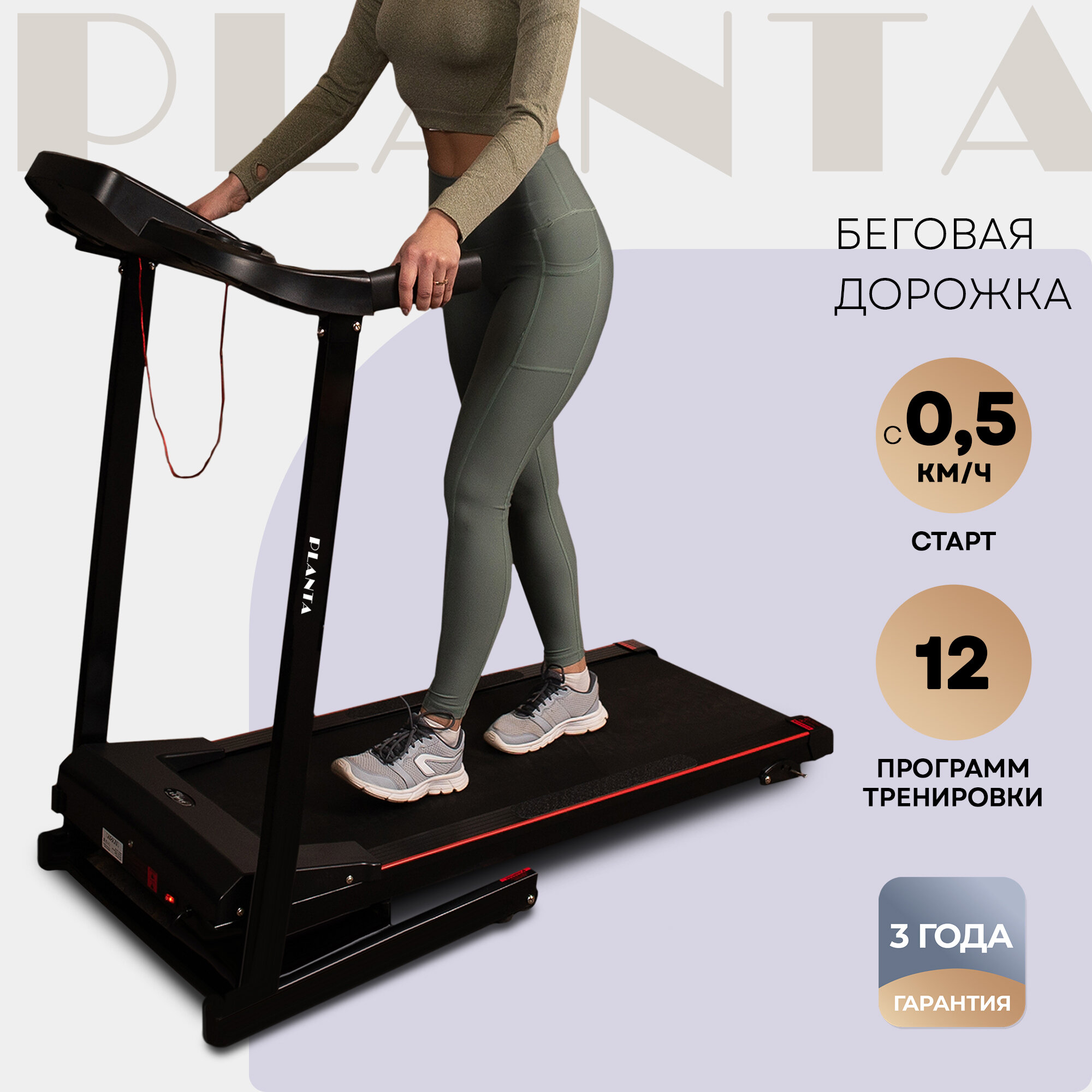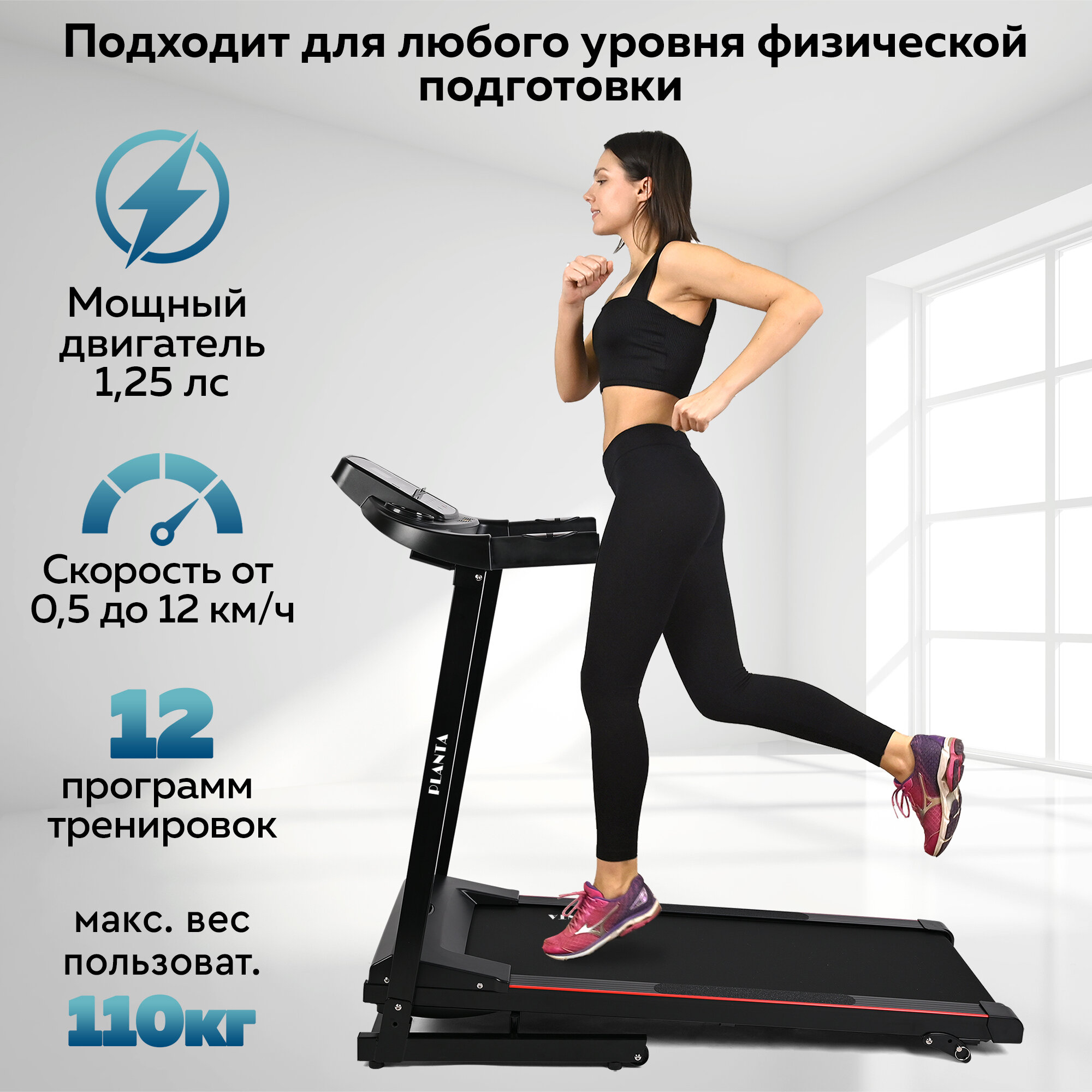PLANTA Беговая дорожка TM-400 складная, скорость от 0,5 до 12 км/ч, 12 программ, тренажер