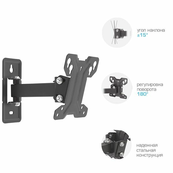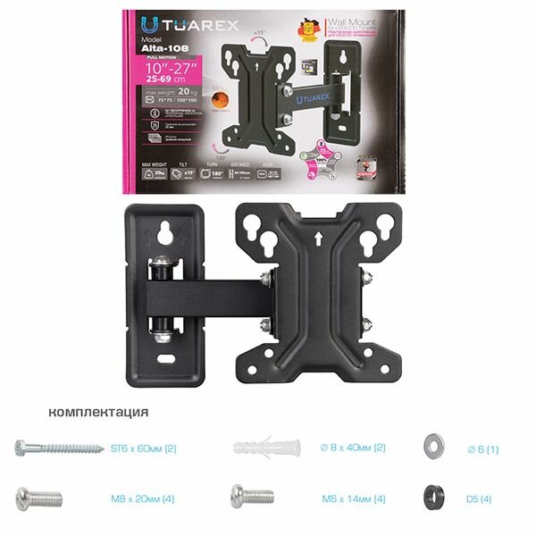 СохранитьНастенный поворотно-наклонный кронштейн для телевизоров и мониторов с диагональю от 10 до 27 дюймов Tuarex Alta-108 интересное:
