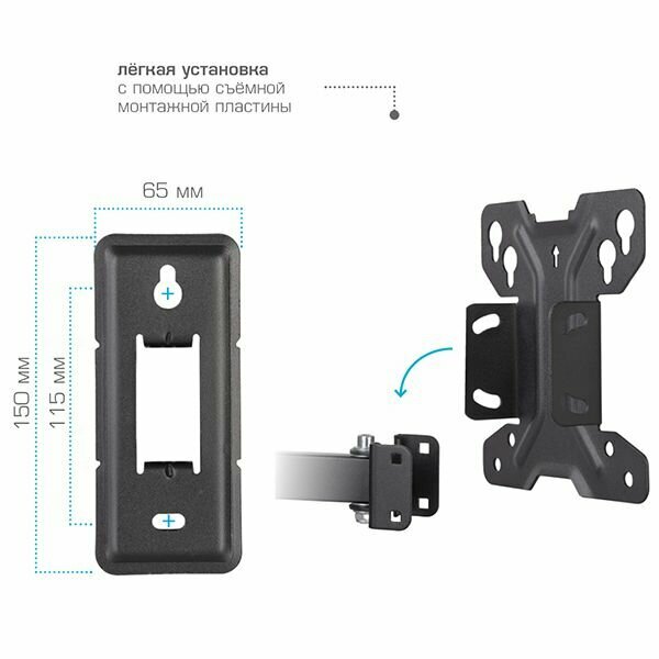 Кронштейн для телевизора настенный Tuarex ALTA-108 / до 20 кг / vesa 100x100 / наклонно-поворотное крепление для тв / держатель для тв