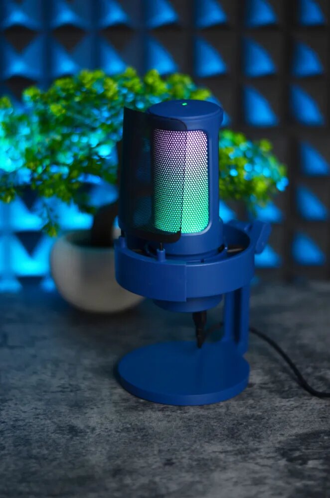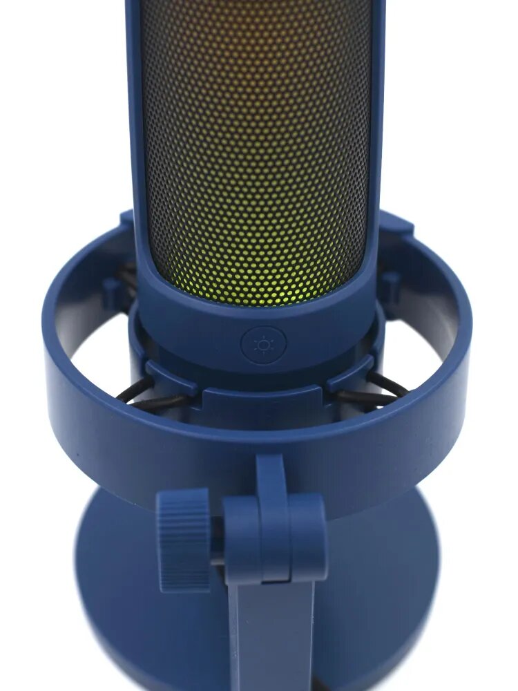 Пластик подставки довольно хлипкий. При воздействии на стол, стержень подставки продолжает трястись как желе, но на звук не влияет. Возможно это даже плюс, т.к. шум от стола поглащается этой амортизацией и не приходит микрофон. Есть модели с металлическим триподом, кажется они выглядят надёжнее. Поп-фильтр и сетку могли тоже покрыть белой краской в белом варианте. RGB не настраивается софтом с ПК, только вручную нажатием кнопки сзади. |