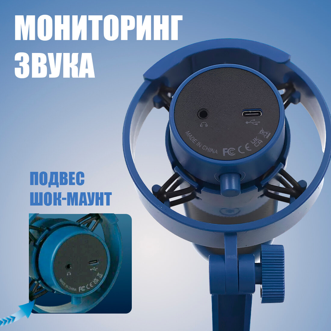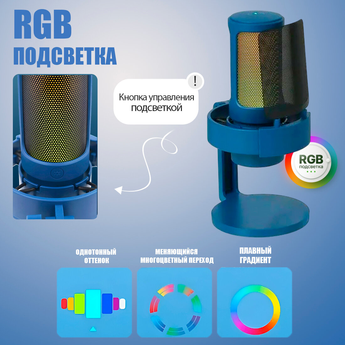 СохранитьПроводной микрофон Fifine A8, USB, настольный, с RGB-подсветкой, синий интересное: