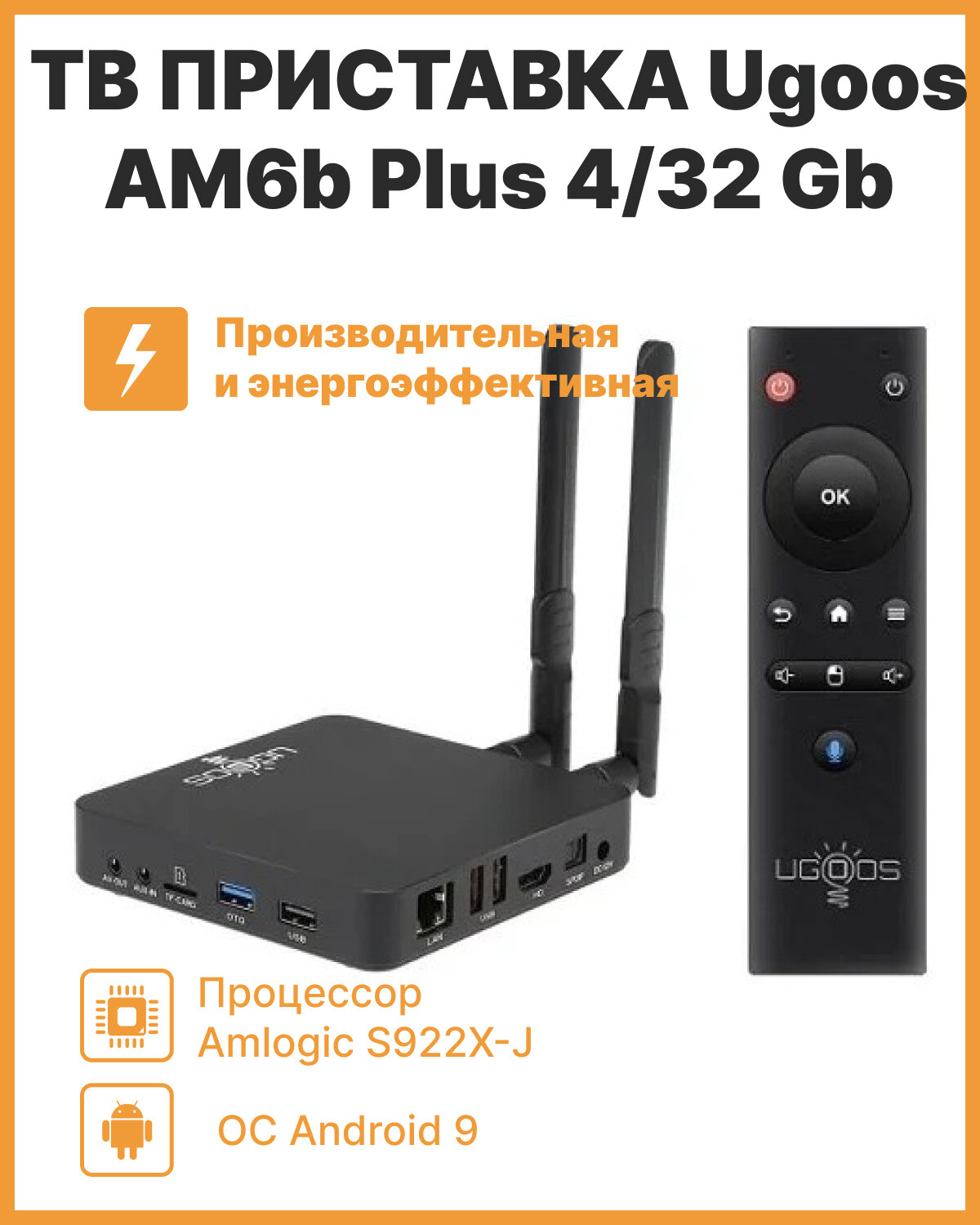 ТВ-приставка UGOOS AM6B Plus с ОС Android 9,0, 4 Гб ОЗУ и 32 Гб ПЗУ, 4G32G, Европейская интересное: