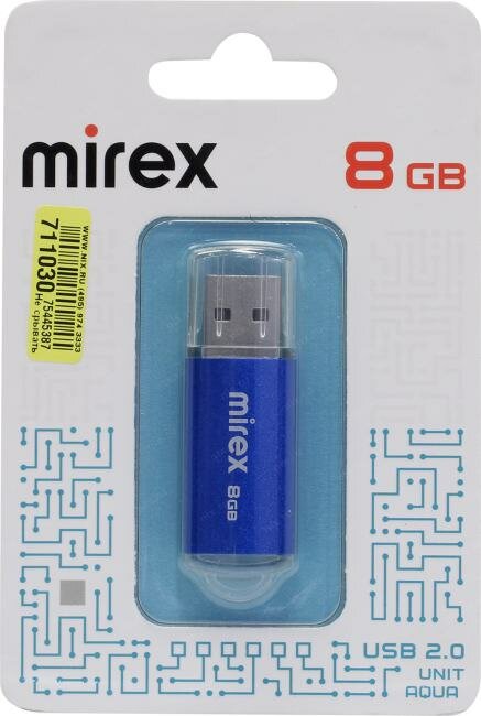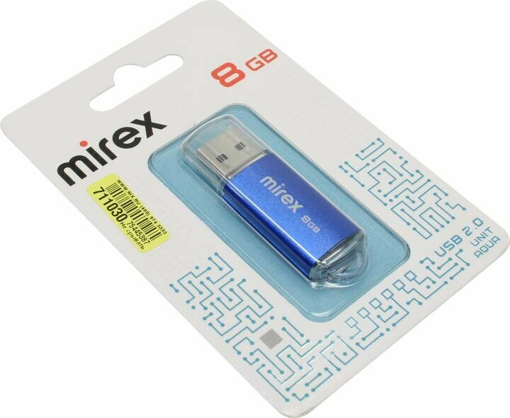 Купить Флешка Mirex UNIT AQUA, 8 Гб, USB2.0, чт до 25 Мб/с, зап до 15 Мб/с, синяя