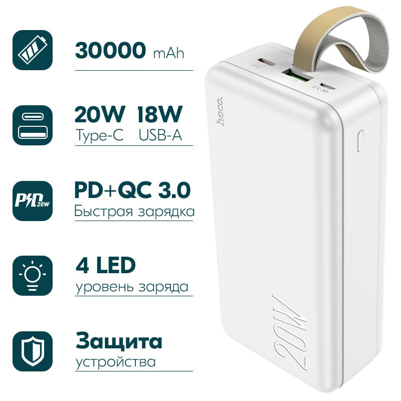 Портативный аккумулятор Hoco J87B Tacker, PD20W + QC3.0, 30000mAh, белый