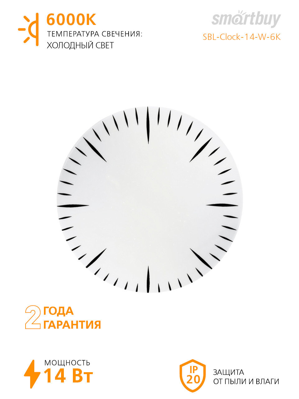 Светильник потолочный Smartbuy SBL-Clock-14-W-6K