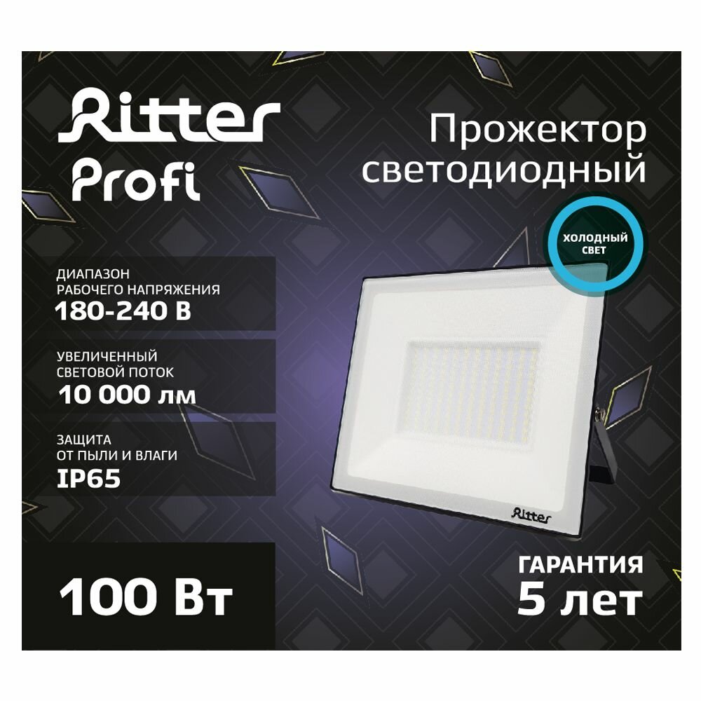 Прожектор светодиодный PROFI 100Вт, 180-240В, IP65, 6500К, 10000Лм, черный, Ritter, 53410 9