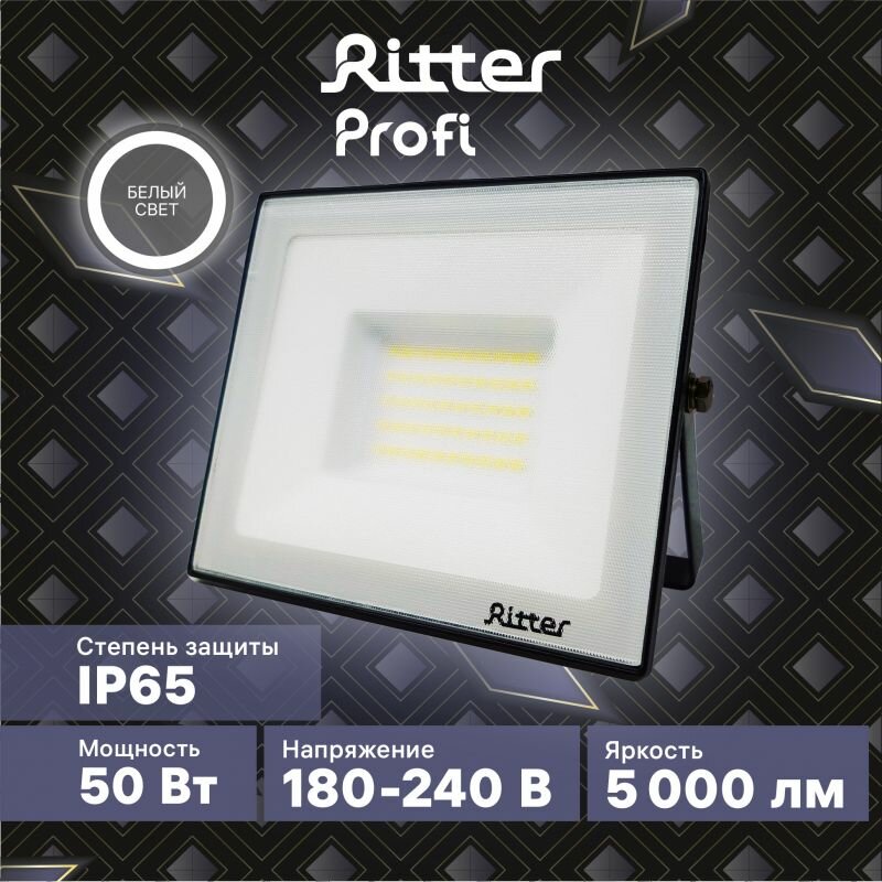 Ritter Прожектор светодиодный 50Вт уличный, нейтральный свет 4000К, IP65, серия PROFI 53417 8