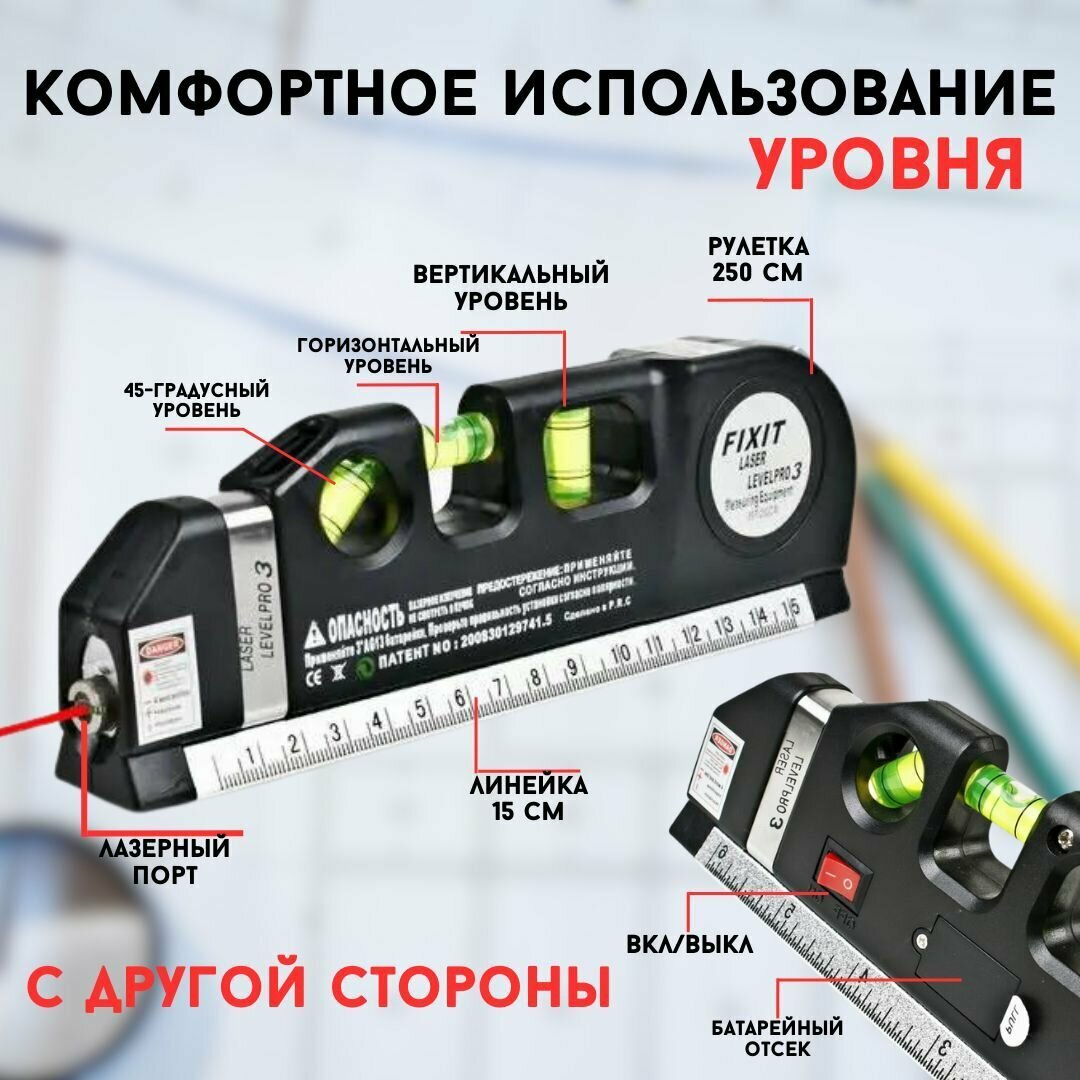 | Минусы: | Это не уровень, а просто лазерный луч. |