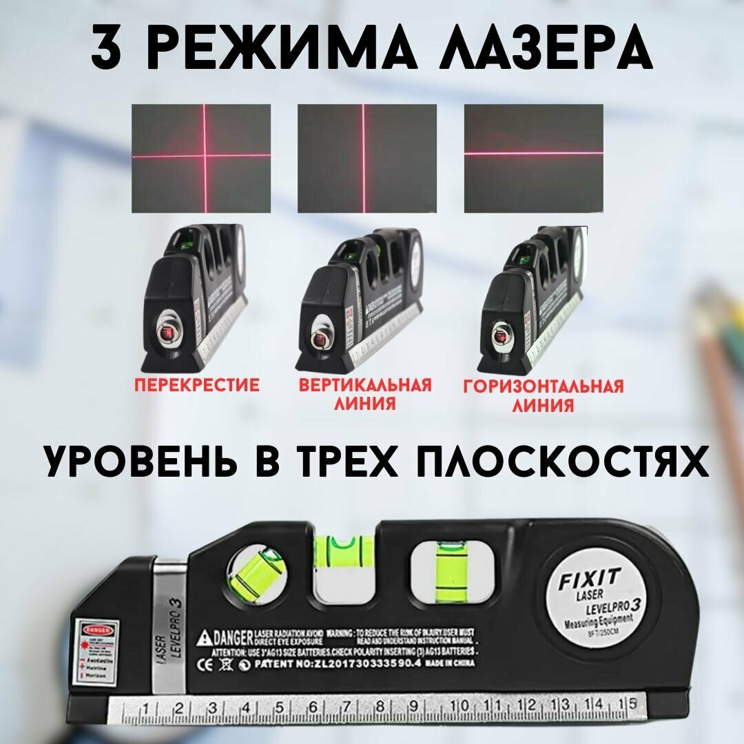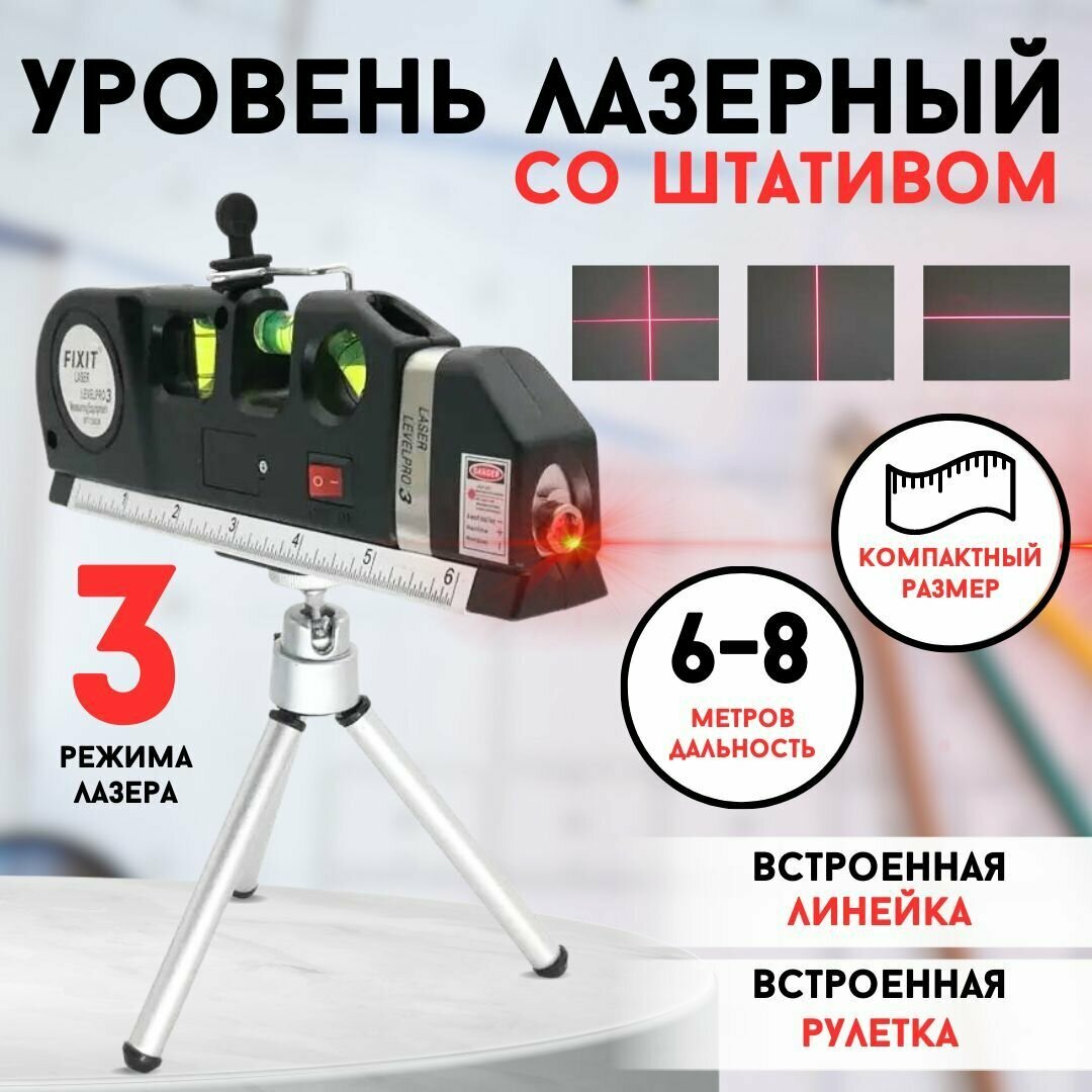 Fixit Laser Level Pro 3 - Многофукциональный лазерный уровень-рулетка/нивелир/линейка