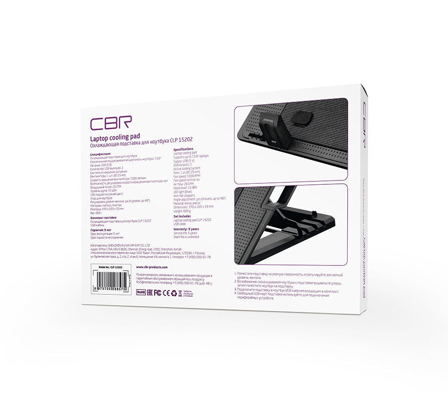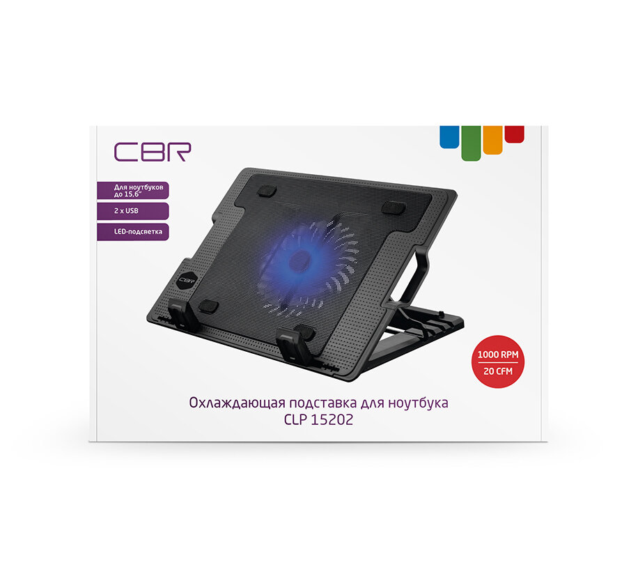 Купить Cbr Аксессуар к ноутбуку CLP 15202, Подставка для ноутбука до 15,6", 370x265x33 мм, с охлаждением, 2xUSB, вентилятор 125 мм, 20 CFM, LED-подсветка,