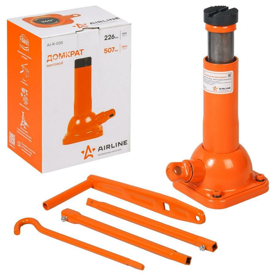 Домкрат винтовой 2т (min - 226 мм, max - 507 мм), AIRLINE AJR03S (1 шт.)