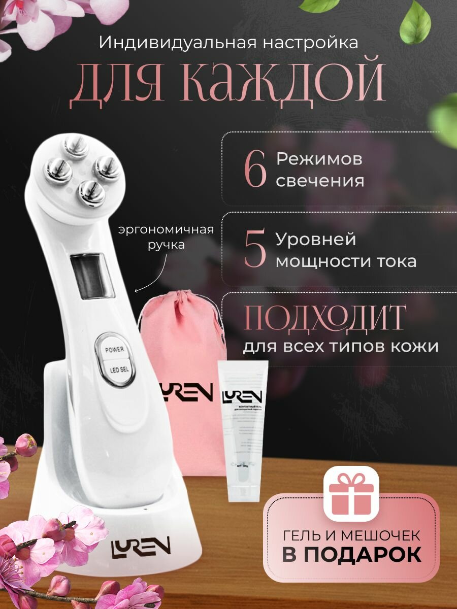 Микротоковый массажер для подтяжки лица и шеи Rf лифтинг аппарат от морщин 4 в 1 Led терапия омоложение, очищение, токопроводящий гель в подарок