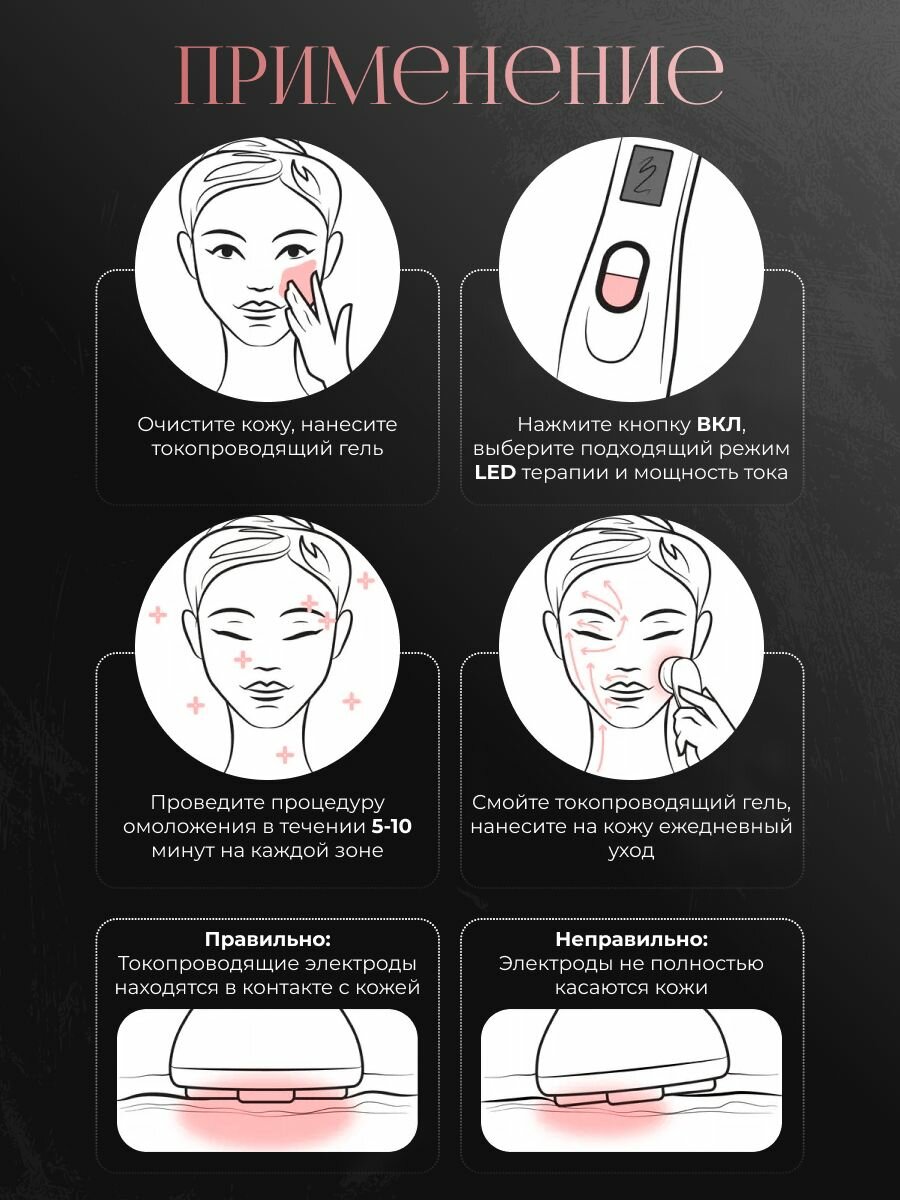 Микротоковый массажер для подтяжки лица и шеи Rf лифтинг аппарат от морщин 4 в 1 Led терапия омоложение, очищение, токопроводящий гель в подарок, косметология домашний уход, регенерация коллагена, борьба с угревой сыпью